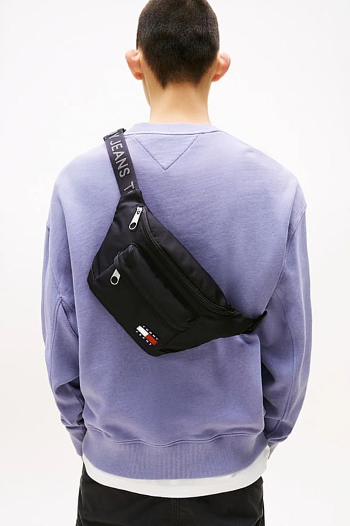 Erkek Yazı Şeritli Bum Bag Askılı Bel Çantası - Siyah Erkek Yazı Şeritli Bum Bag Askılı Bel Çantası - Siyah AM0AM13390 تک سایز