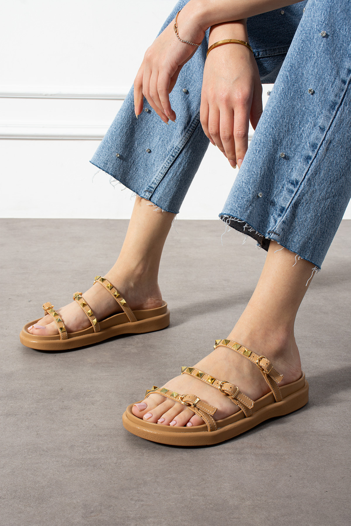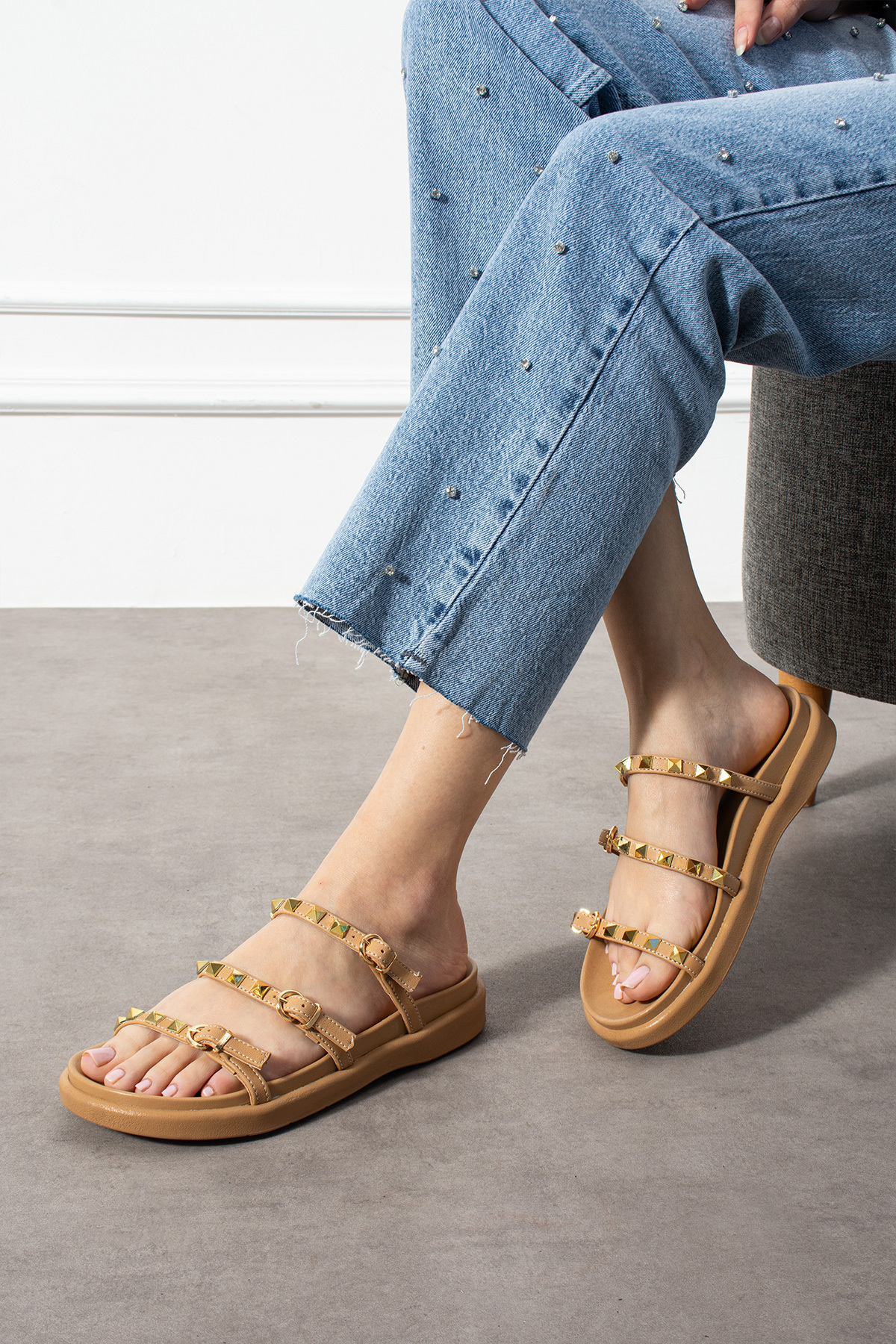 Kadın Taş Detaylı Tokalı Şık Terlik – Vizon Altın Renk Aksesuarlı Kadın Taş Detaylı Tokalı Şık Terlik – Vizon Altın Renk Aksesuarlı 005829 40