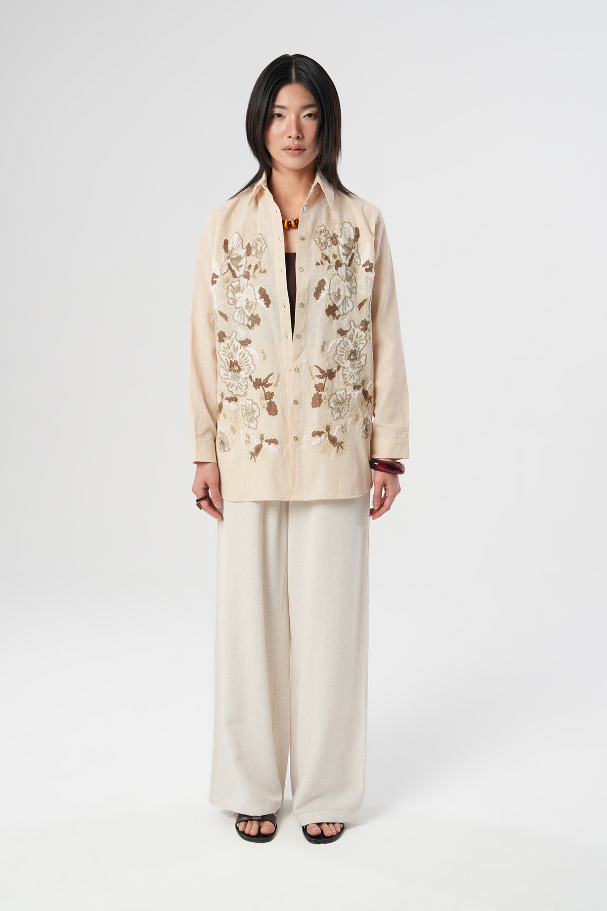 KADIN AÇIK BEJ ÖNÜ KAHVERENGİ NAKIŞ İŞLEMELİ OVERSİZE GÖMLEK KADIN AÇIK BEJ ÖNÜ KAHVERENGİ NAKIŞ İŞLEMELİ OVERSİZE GÖMLEK 34310 Standart