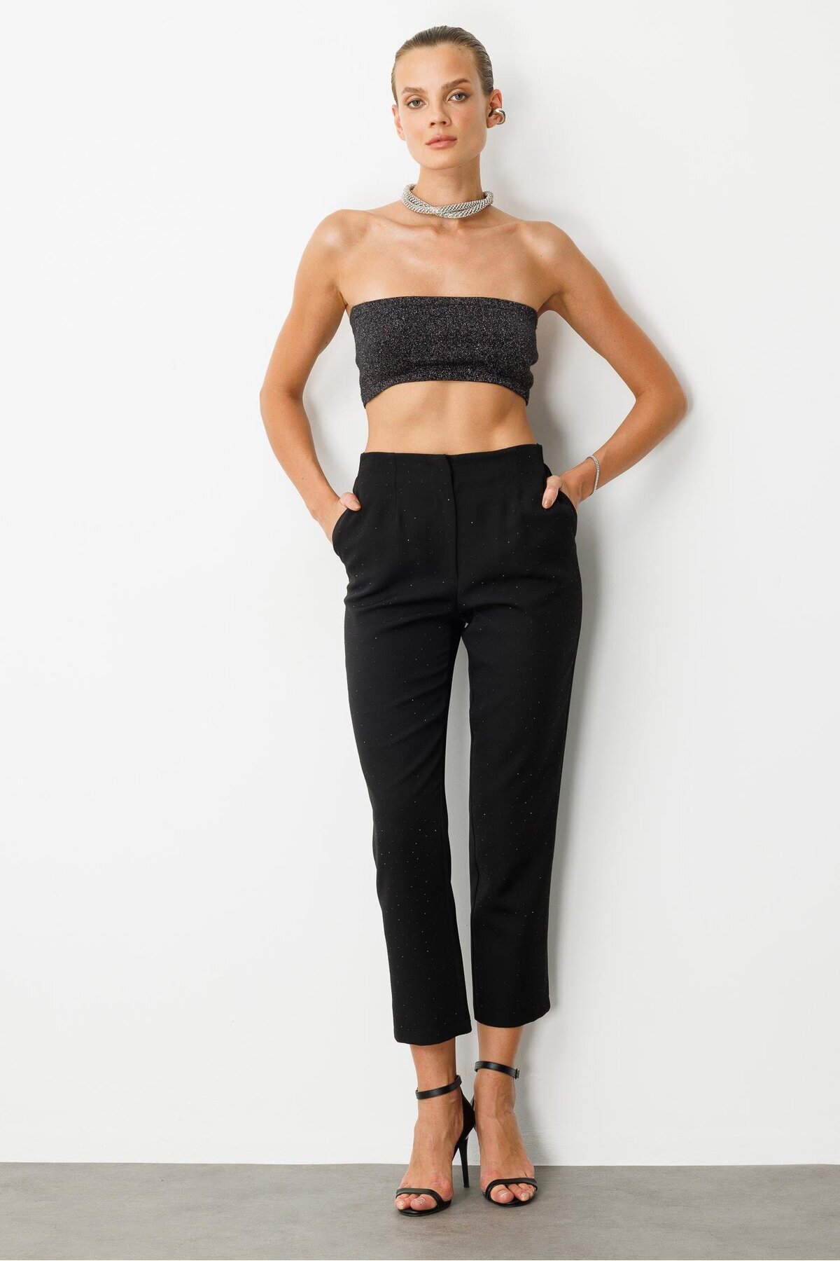 Beli Lastikli Taşlı Pantolon-SİYAH Beli Lastikli Taşlı Pantolon-SİYAH 5SKB21K1729 44