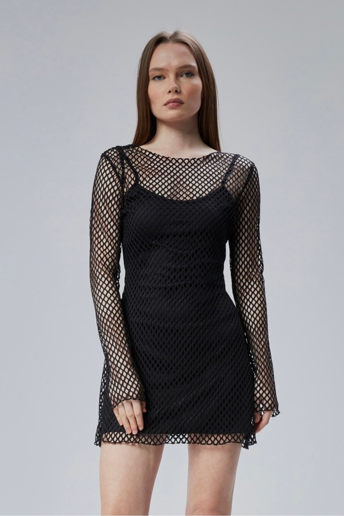 Velora - Saten Sırt Dekolteli Mini Elbise Velora - Saten Sırt Dekolteli Mini Elbise NBTUG202 L