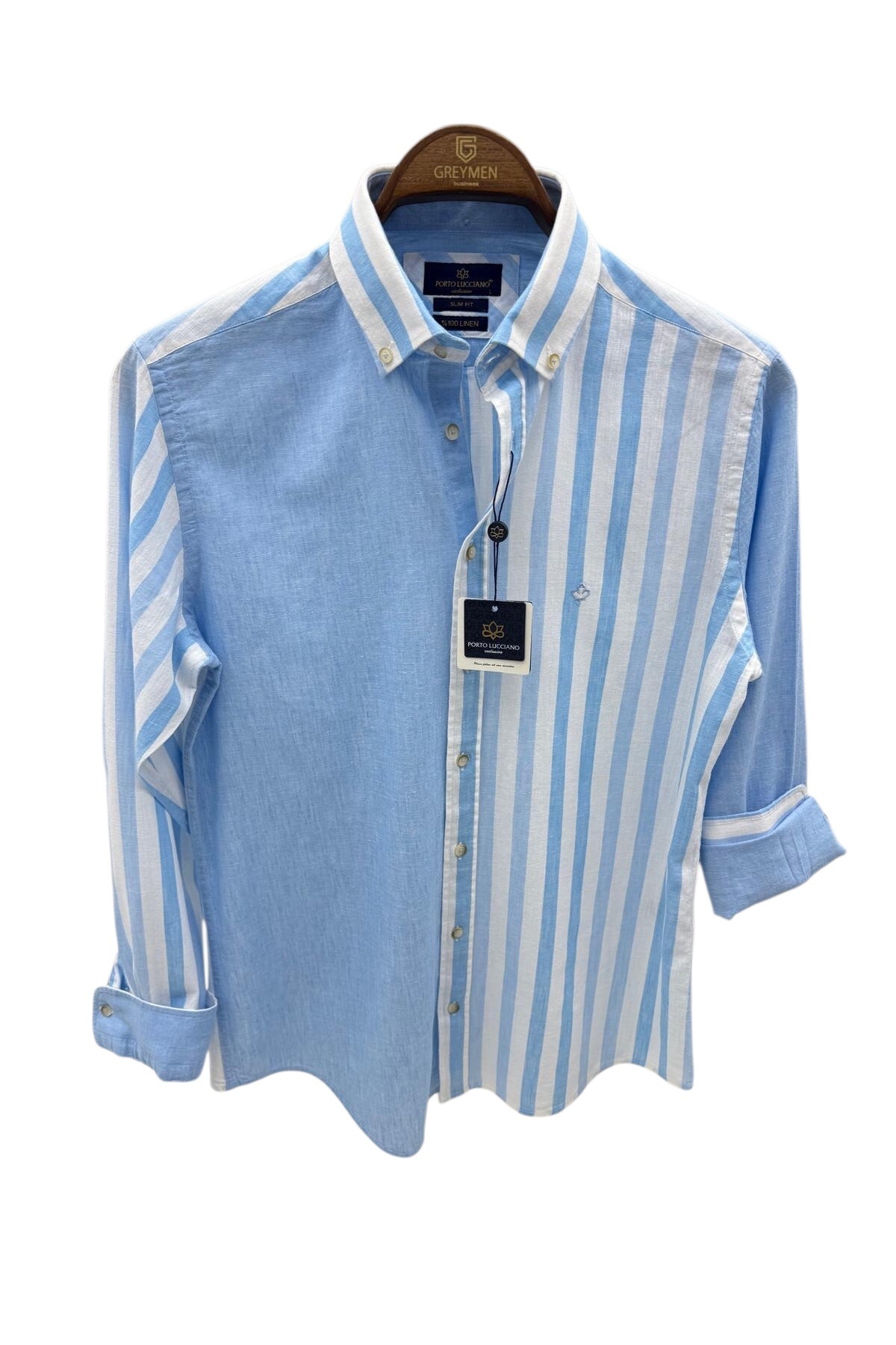 Erkek Slim Fit Kesim Keten Çizgili Uzun Kollu Gömlek Erkek Slim Fit Kesim Keten Çizgili Uzun Kollu Gömlek GG2440 3XL