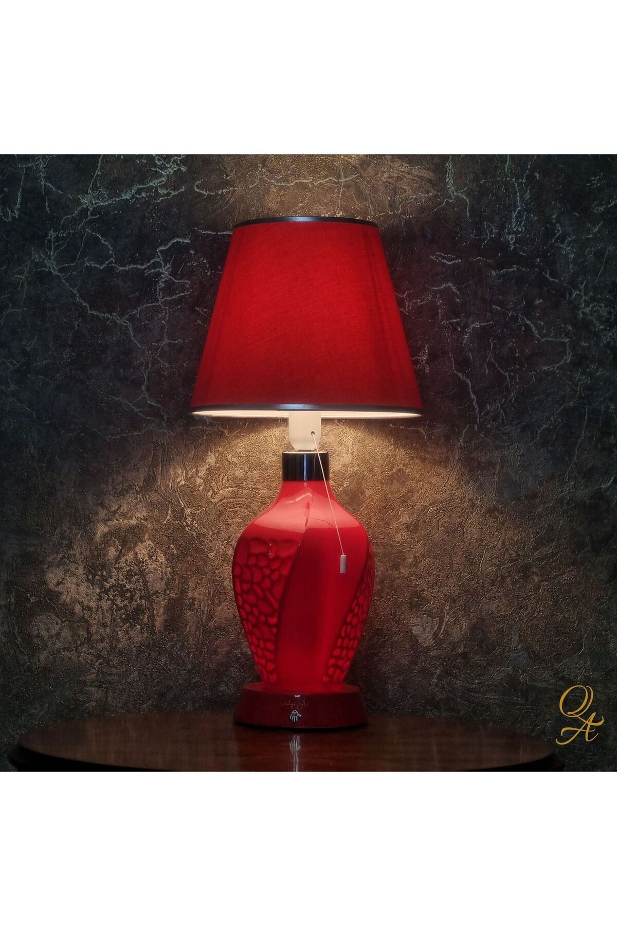 El Yapımı-şeffaf Porselen-kırmızı Gövde-kumaş Şapkalı-dokunmatik-abajur El Yapımı-şeffaf Porselen-kırmızı Gövde-kumaş Şapkalı-dokunmatik-abajur ABJ-GL-KZ تک سایز