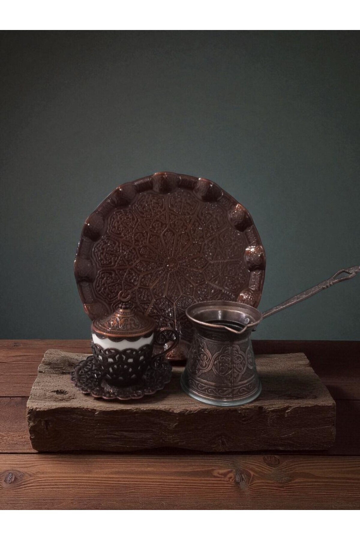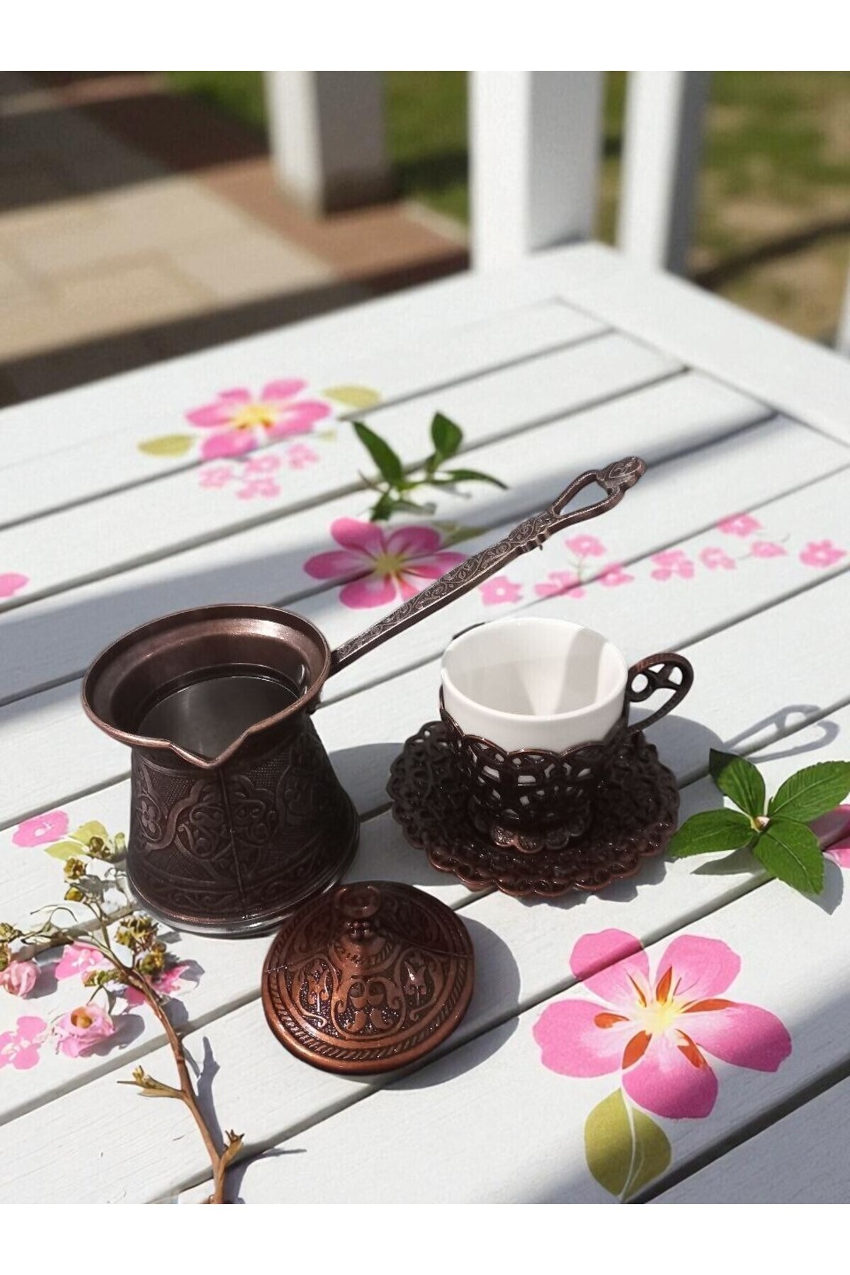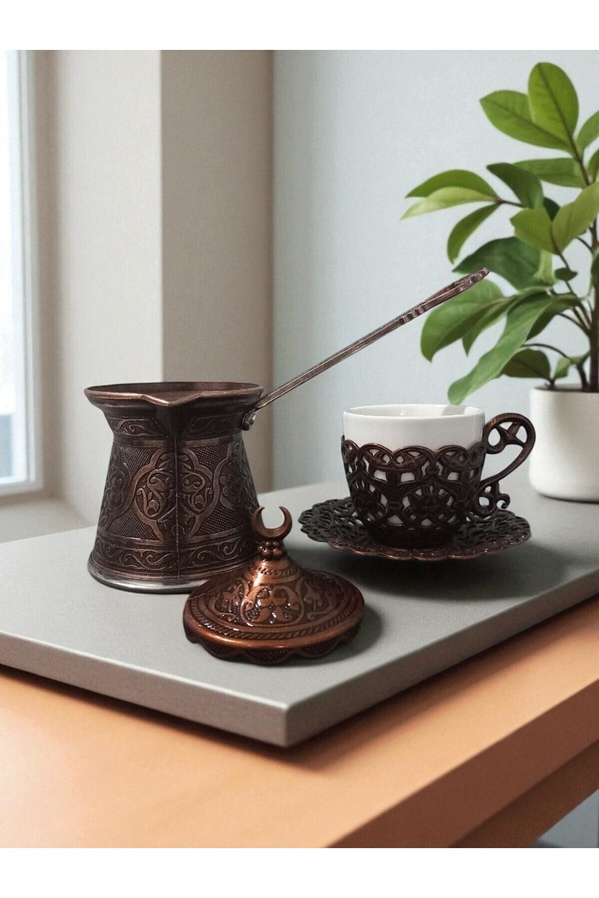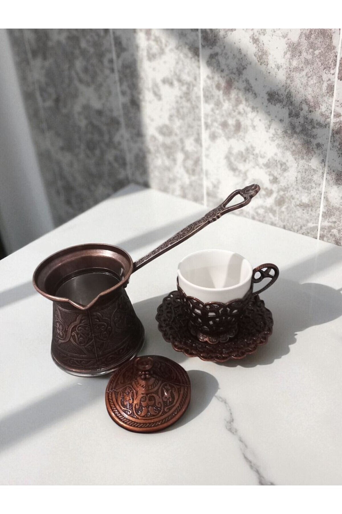 2 kişilik oymalı döküm cezve ve Yüksek kalite bakır işlemeli Türk kahve fincanı 2 kişilik oymalı döküm cezve ve Yüksek kalite bakır işlemeli Türk kahve fincanı acar-cezve4-fincan تک سایز
