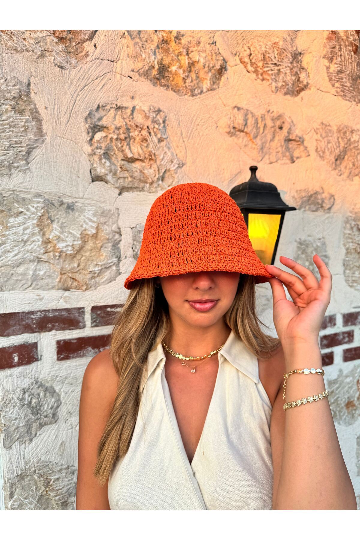 Turuncu Renk Örgü Bucket Şapka / Yazlık Şapka Turuncu Renk Örgü Bucket Şapka / Yazlık Şapka TYC00521977373 Standart
