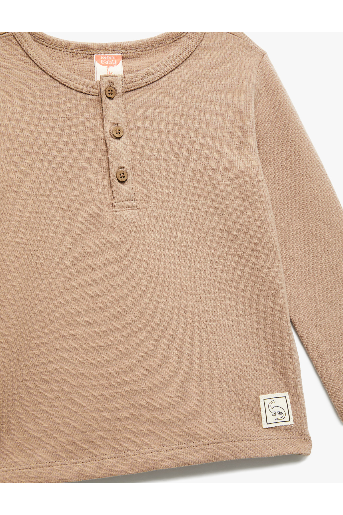 Pamuklu Uzun Kollu Düğmeli Tişört Pamuklu Uzun Kollu Düğmeli Tişört 6WMB10053TK 4-5 Yaş