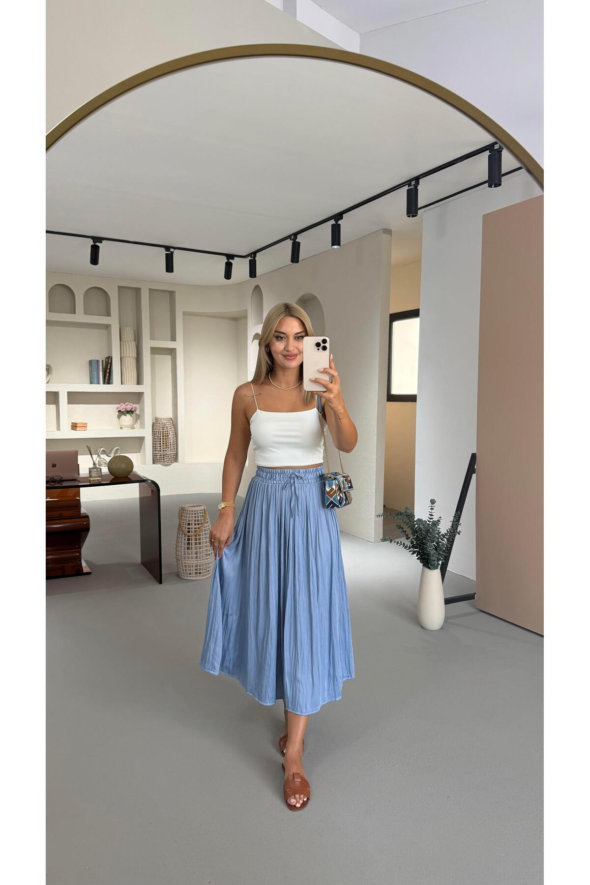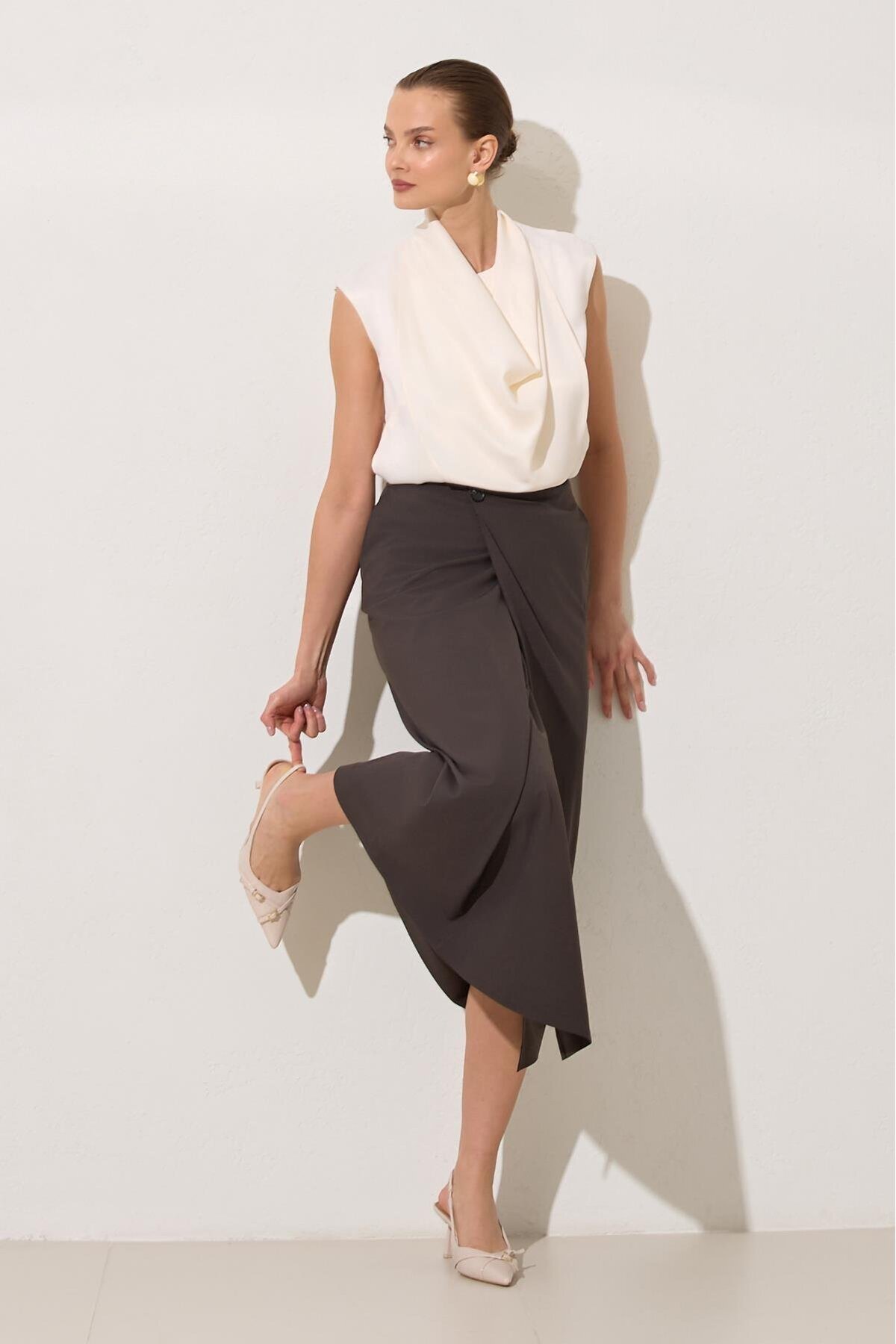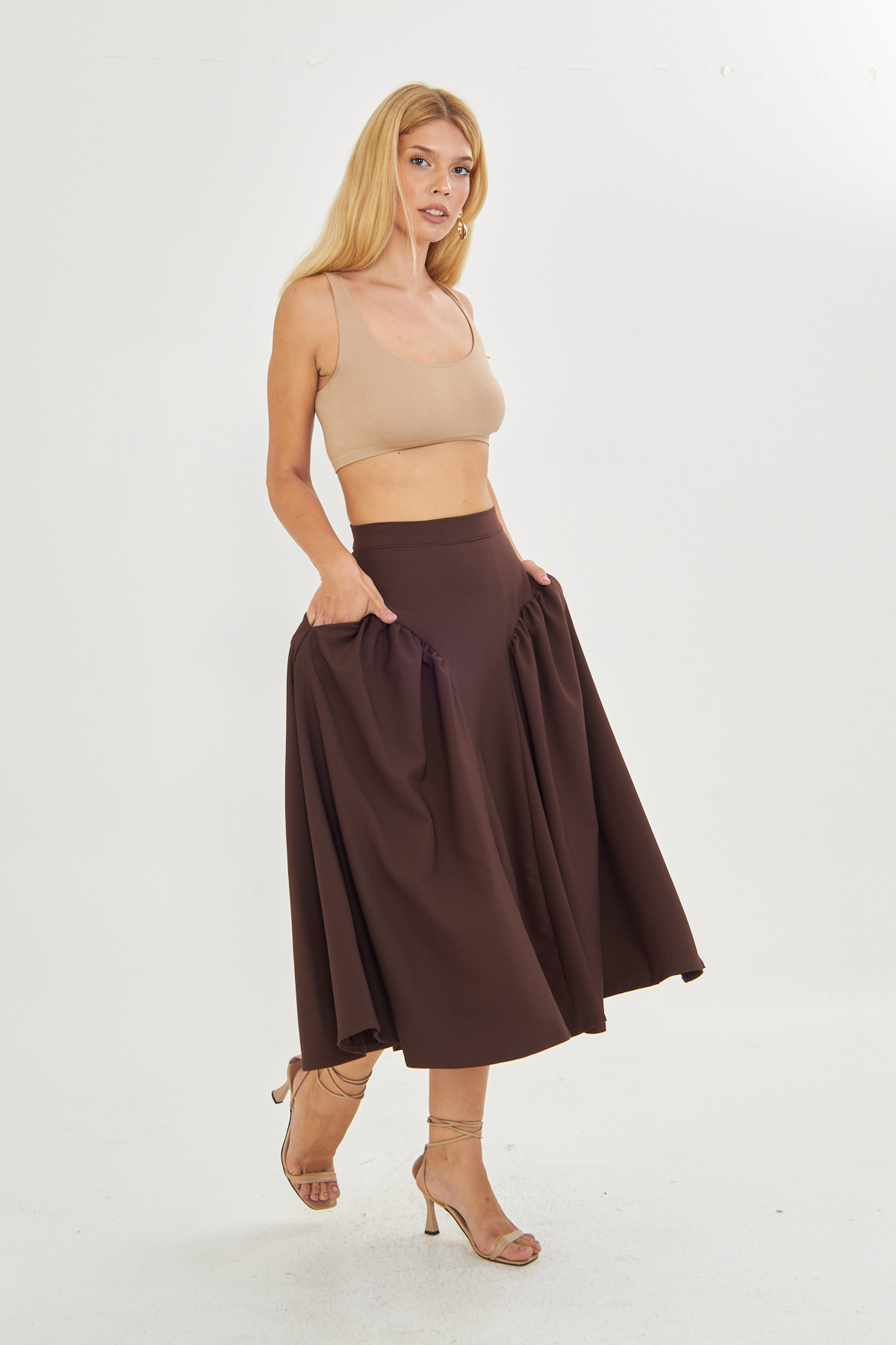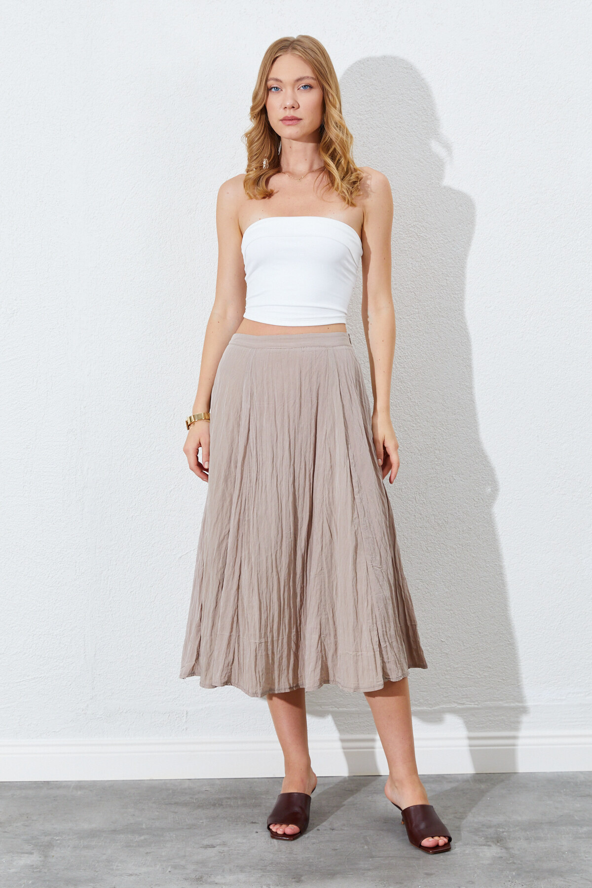 Vizon Kırışık dokulu, yüksek bel, midi boy kloş kadın etek | MJS295128-01 Vizon Kırışık dokulu, yüksek bel, midi boy kloş kadın etek | MJS295128-01 L