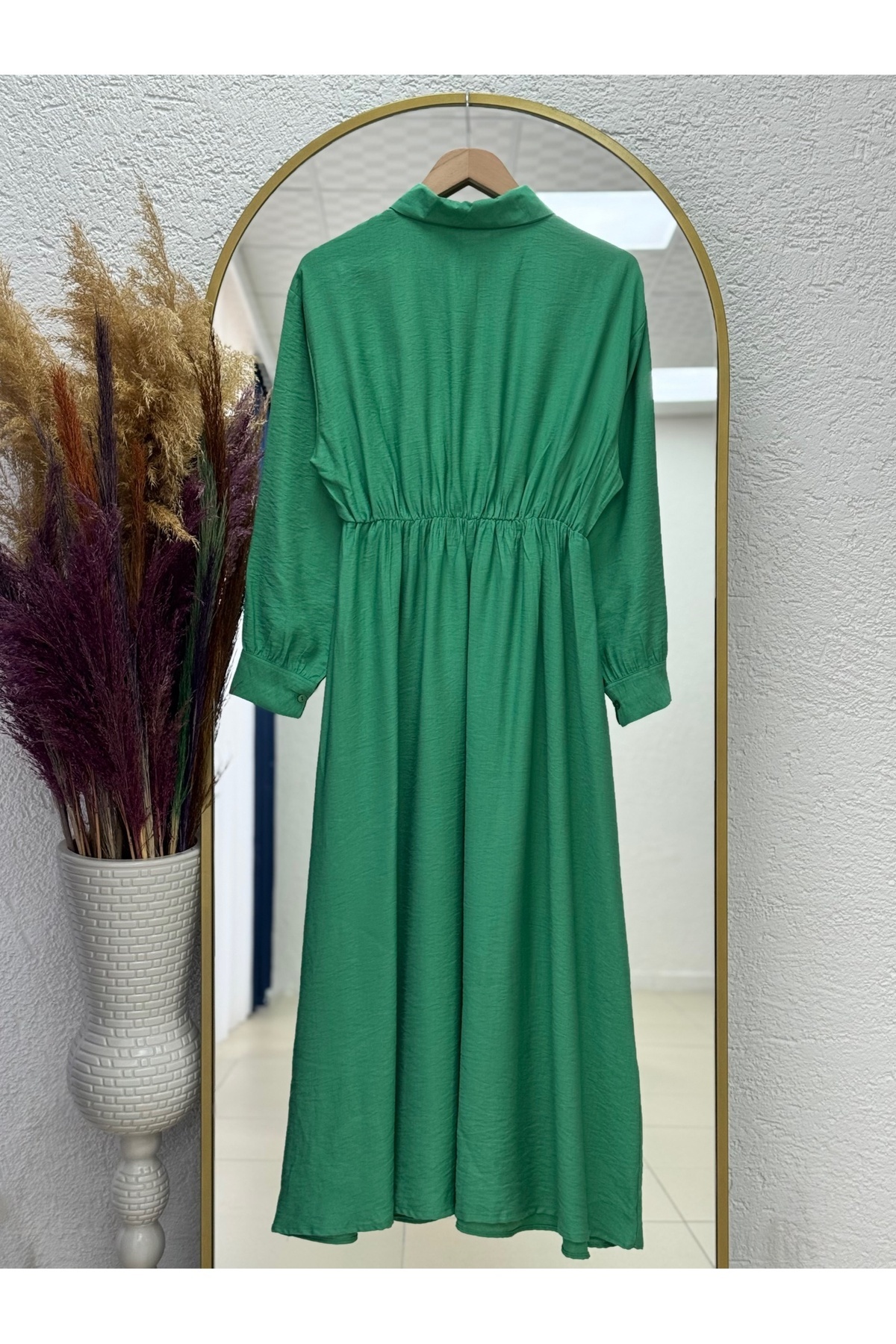 Mireva Yarım Patlı Beli Lastikli Elbise-AS4078 Yeşil Mireva Yarım Patlı Beli Lastikli Elbise-AS4078 Yeşil HAN25YEbr00000524ER L/XL