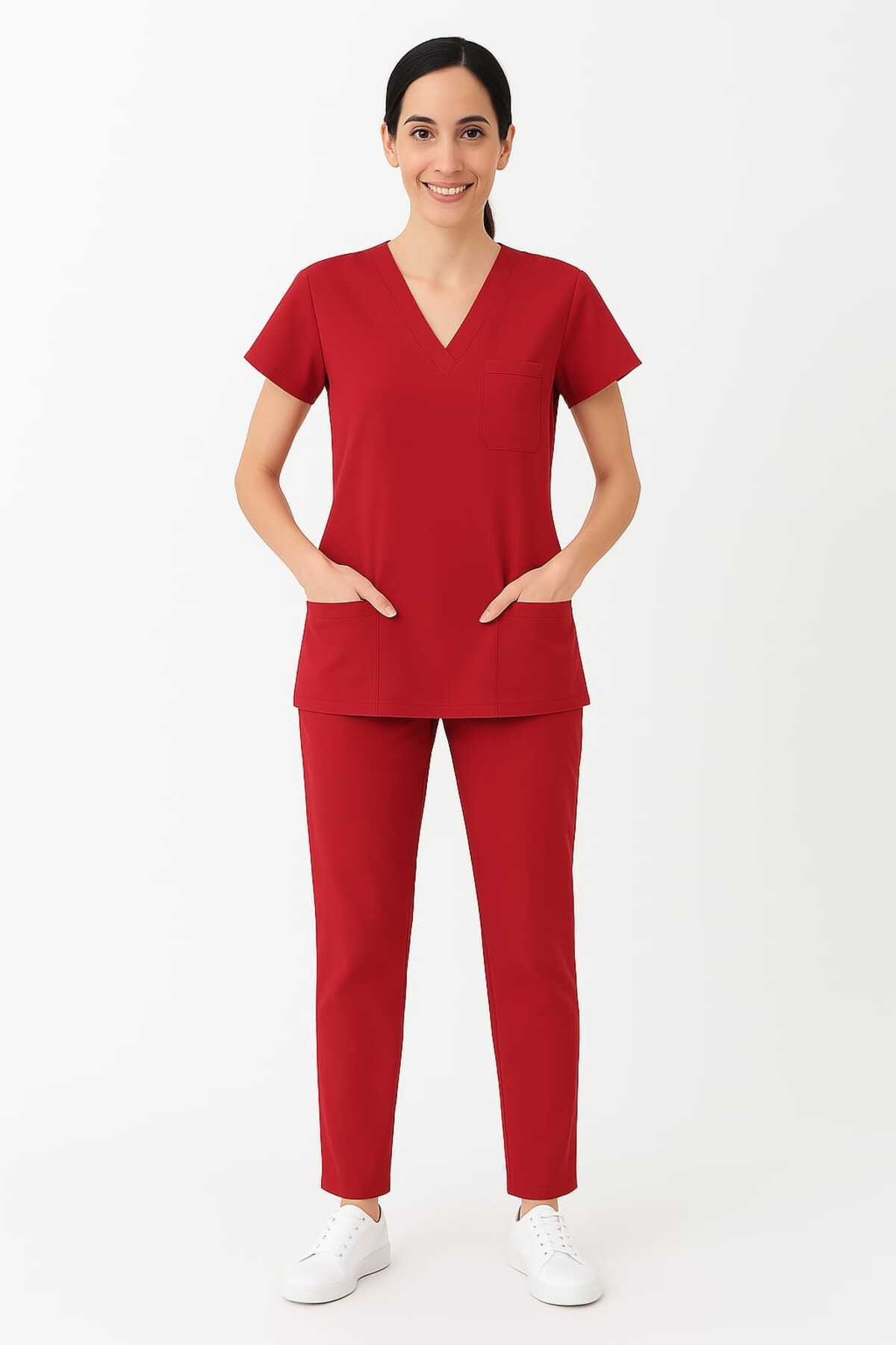 Kırmızı Likralı Unisex Yarasa Kol Hemşire Ve Doktor Forması Takımı Scrubs Kırmızı Likralı Unisex Yarasa Kol Hemşire Ve Doktor Forması Takımı Scrubs DR-1 2XL