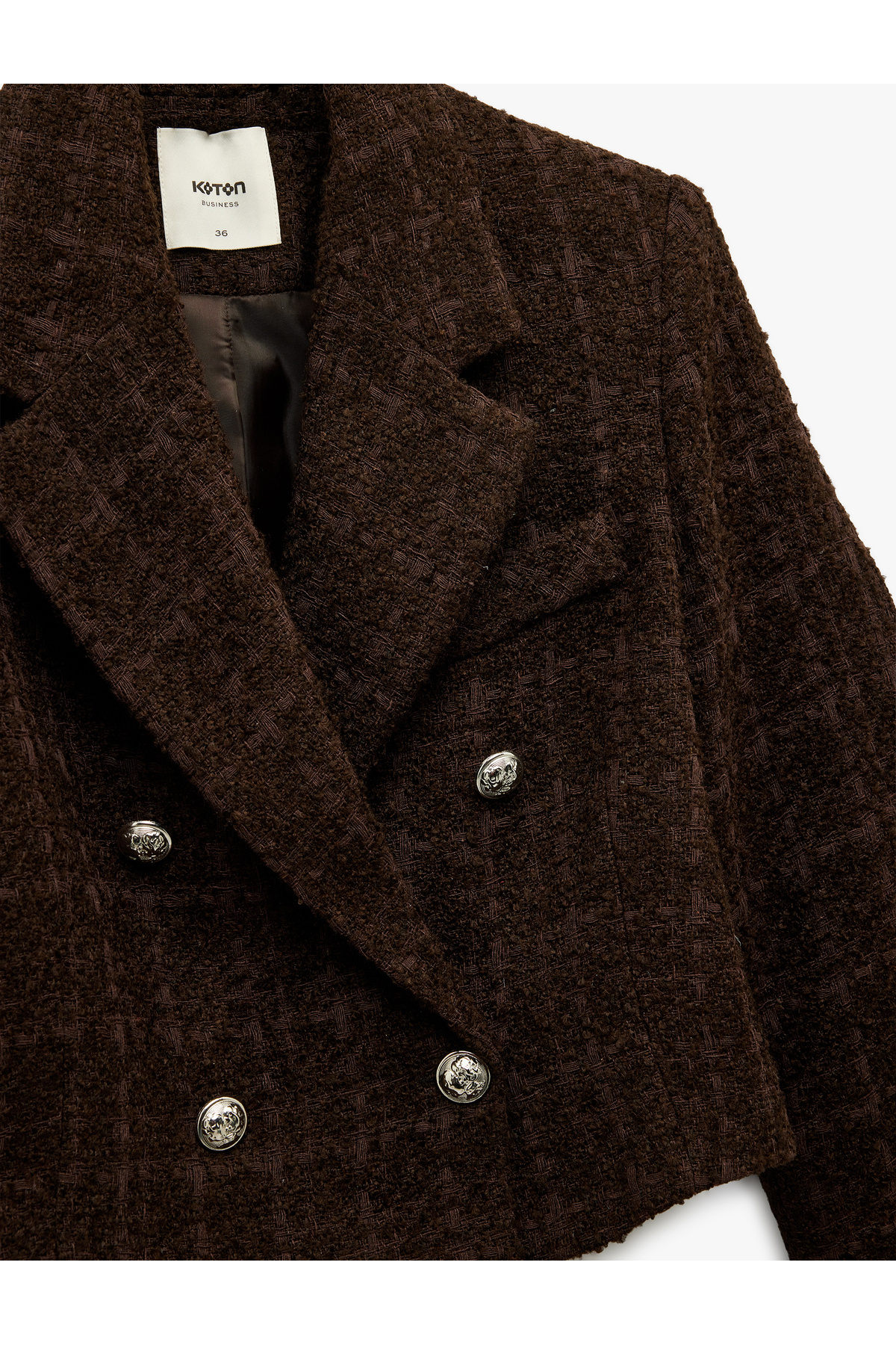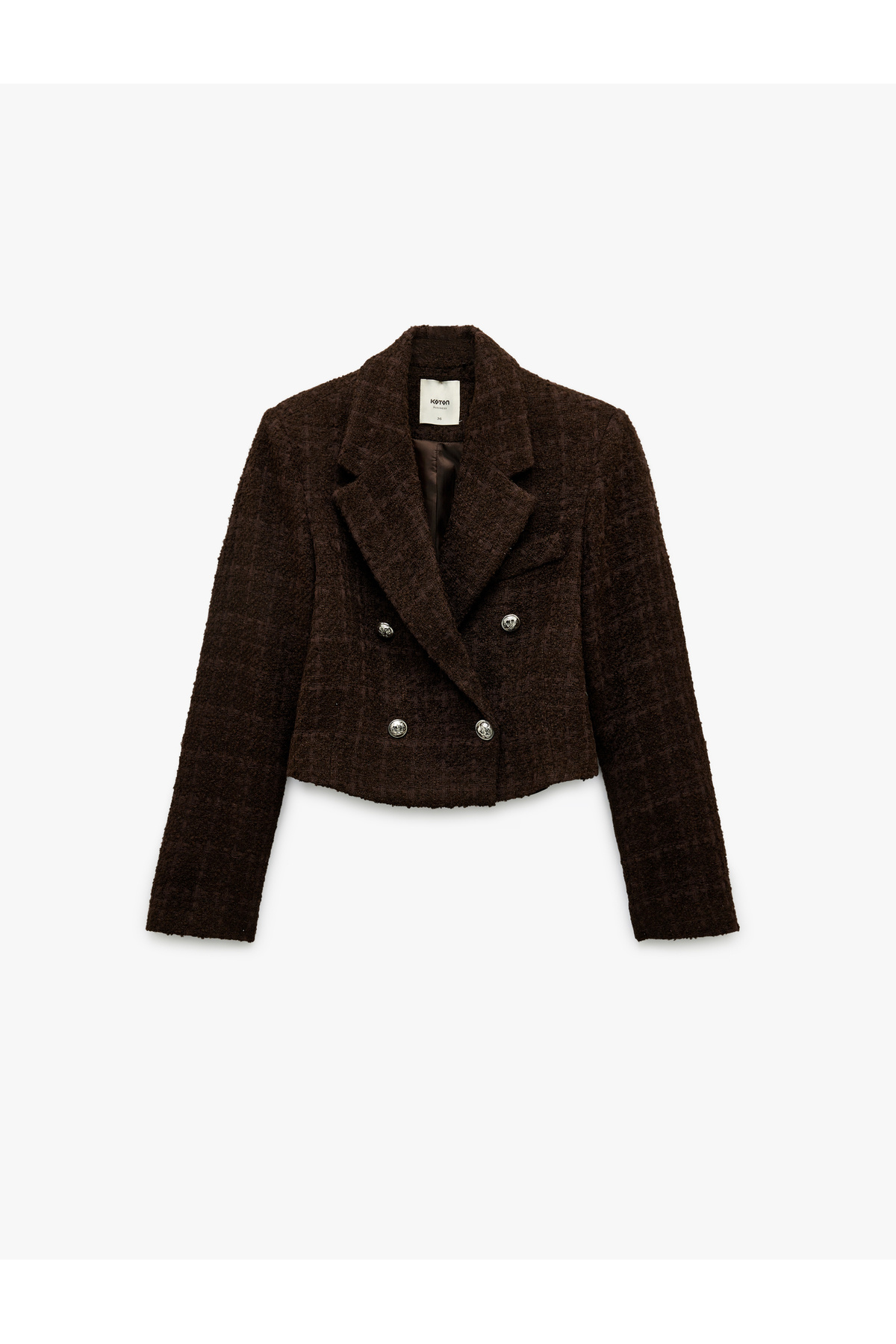 Slim Fit Kruvaze Uzun Kollu Tüvit Crop Blazer Ceket Slim Fit Kruvaze Uzun Kollu Tüvit Crop Blazer Ceket 6WAK50041UW 44