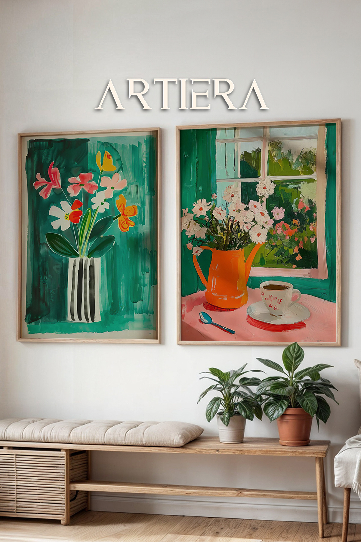 Pencereden Manzara ve Çiçek Vazosu Yağlı Boya Hissi İkili Ahşap Çerçeveli Duvar Tablosu Pencereden Manzara ve Çiçek Vazosu Yağlı Boya Hissi İkili Ahşap Çerçeveli Duvar Tablosu NOIR-2L-1102 50 x 70