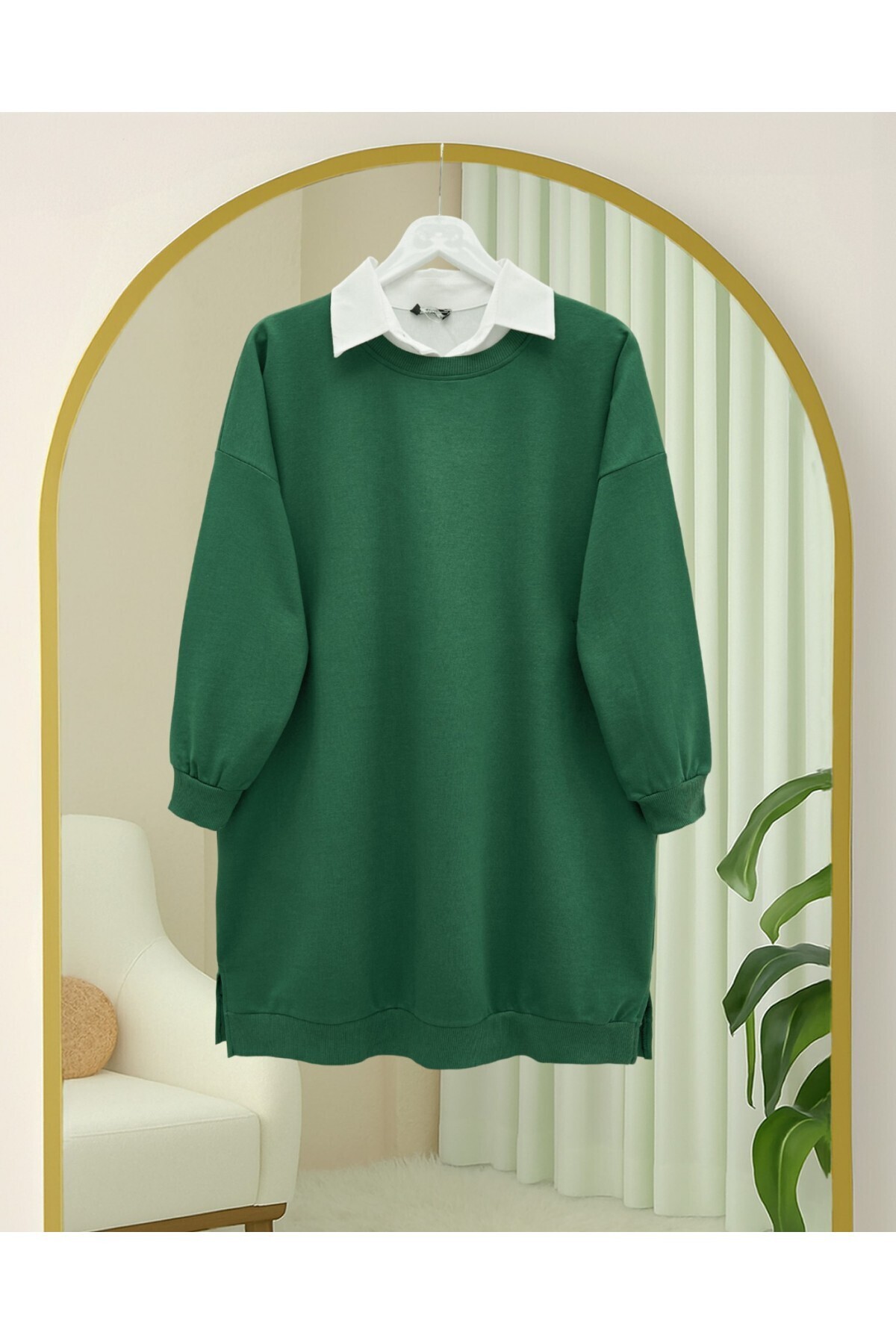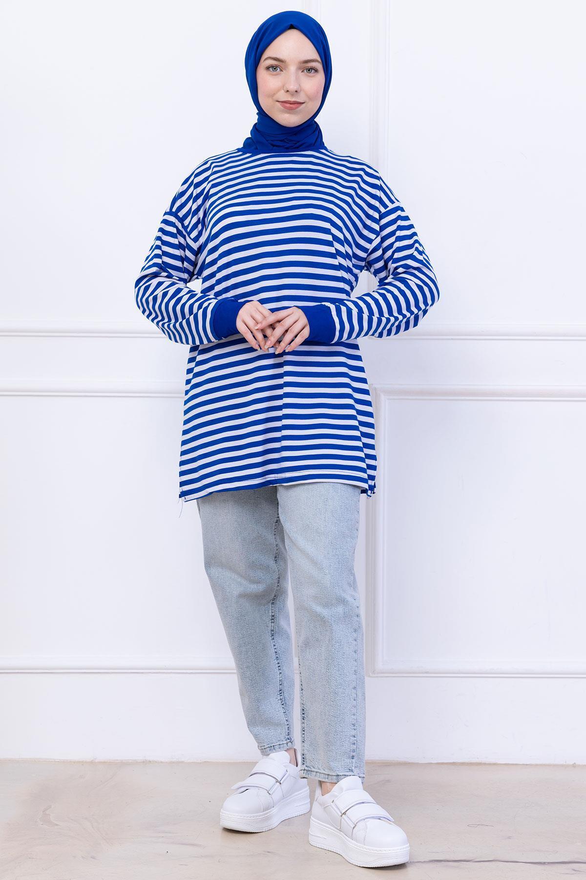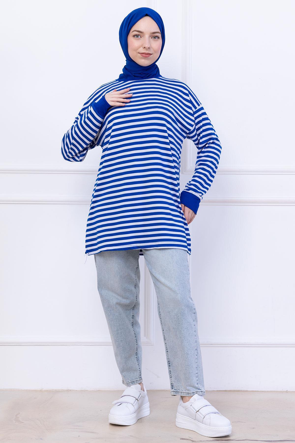 Çizgili Kısa Penye Tunik Saks Mavisi HM2477 Çizgili Kısa Penye Tunik Saks Mavisi HM2477 L/XL