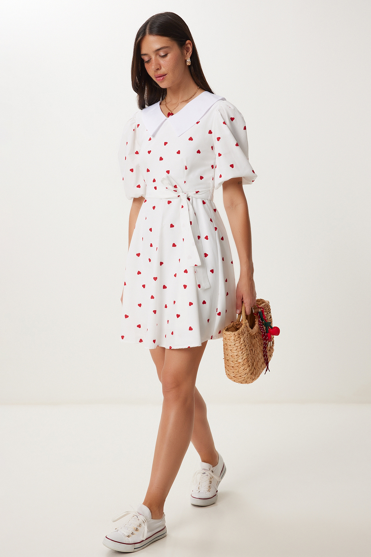 Kadın Ekru Çilekli Kuşaklı Mini Dokuma Elbise DK00175 Kadın Ekru Çilekli Kuşaklı Mini Dokuma Elbise DK00175 40