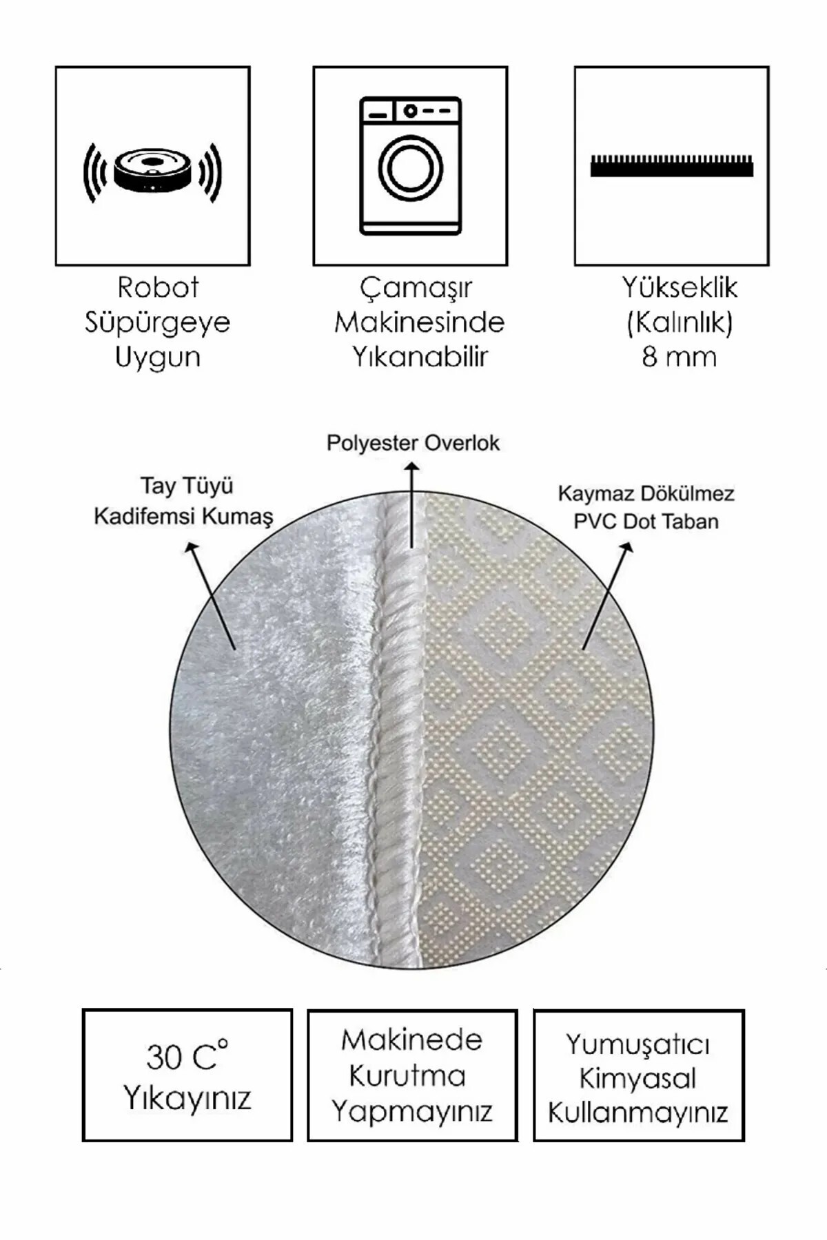 - Saçak Tipi : Saçaksız (Overlok)