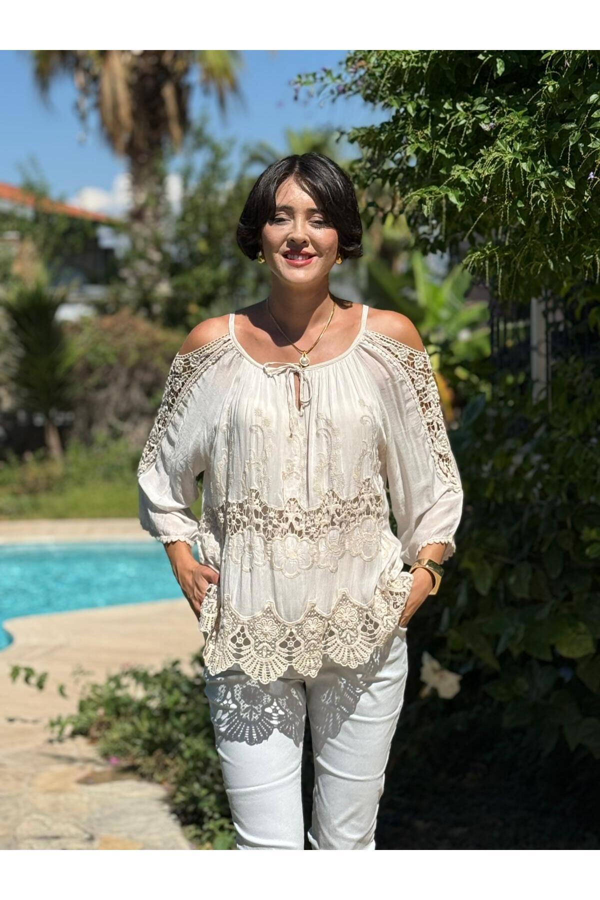 NC9740 İtalyan İpek Bluz Bej NC9740 İtalyan İpek Bluz Bej NC9740Bej Standart