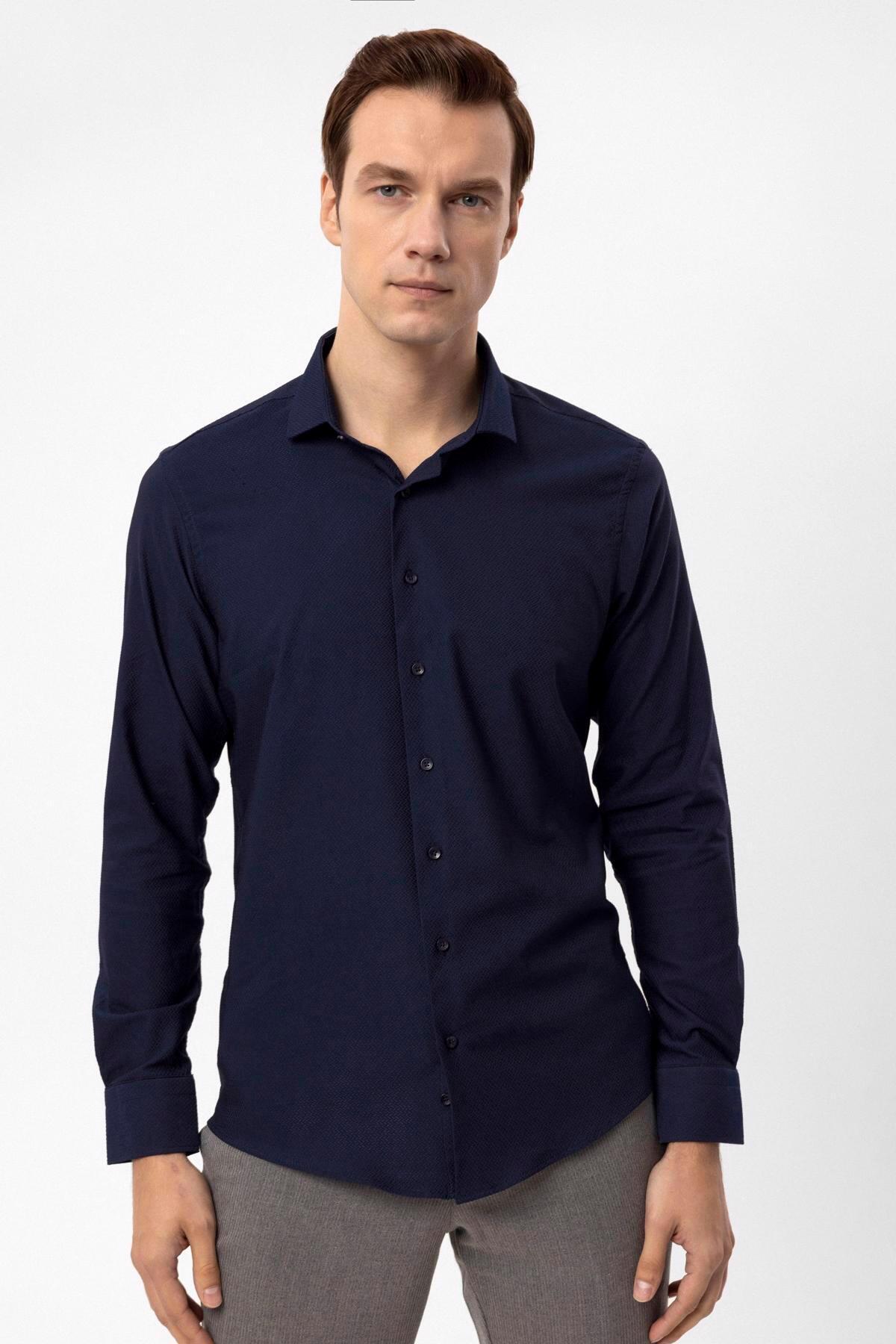 Slim Fit Armür Desenli Erkek Gömlek Slim Fit Armür Desenli Erkek Gömlek 1570948 L