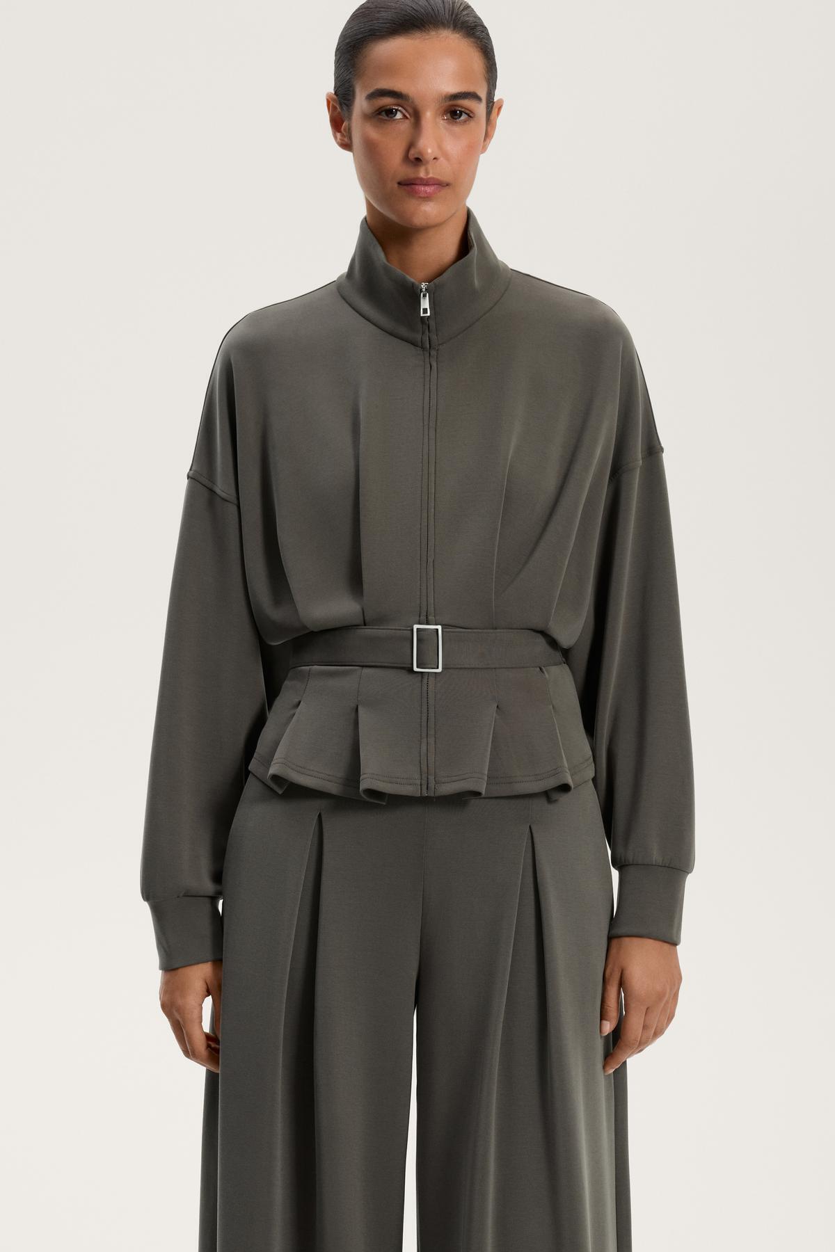 Yumuşak dokulu modal içeren dik yaka piping ceket Yumuşak dokulu modal içeren dik yaka piping ceket 33806791 XL