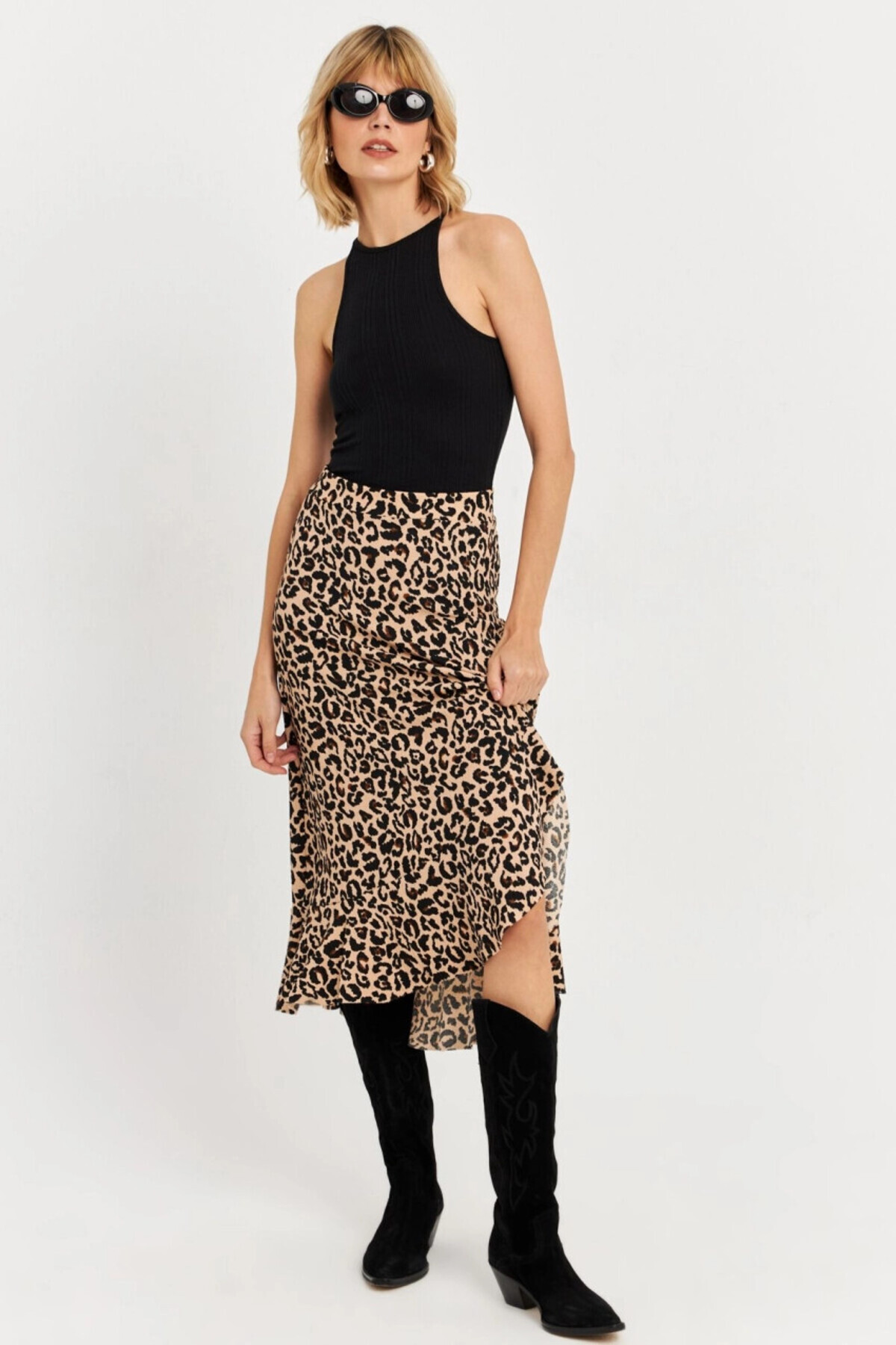Kadın Leopar Vizon Asimetrik Desenli Etek Kadın Leopar Vizon Asimetrik Desenli Etek 5319499 XL