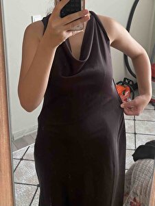 Kadın Kahverengi Ön Arka Degaje Yaka Saten Midi Elbise Kadın Kahverengi Ön Arka Degaje Yaka Saten Midi Elbise 2664 L