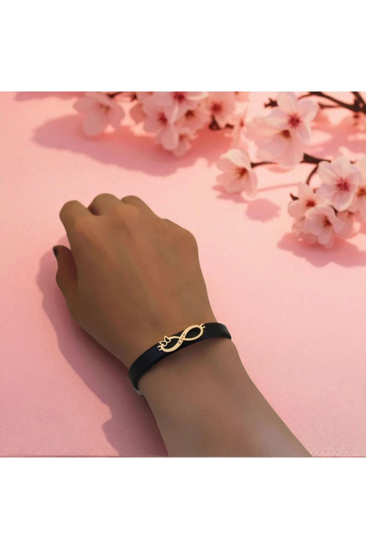 14 Ayar Altın Plakalı Ebru İsmine Özel Siyah Derili Sonsuzluk Motifli Hediye Bileklik-562isim 14 Ayar Altın Plakalı Ebru İsmine Özel Siyah Derili Sonsuzluk Motifli Hediye Bileklik-562isim 562-blkad-fbfg-MO1 22 cm
