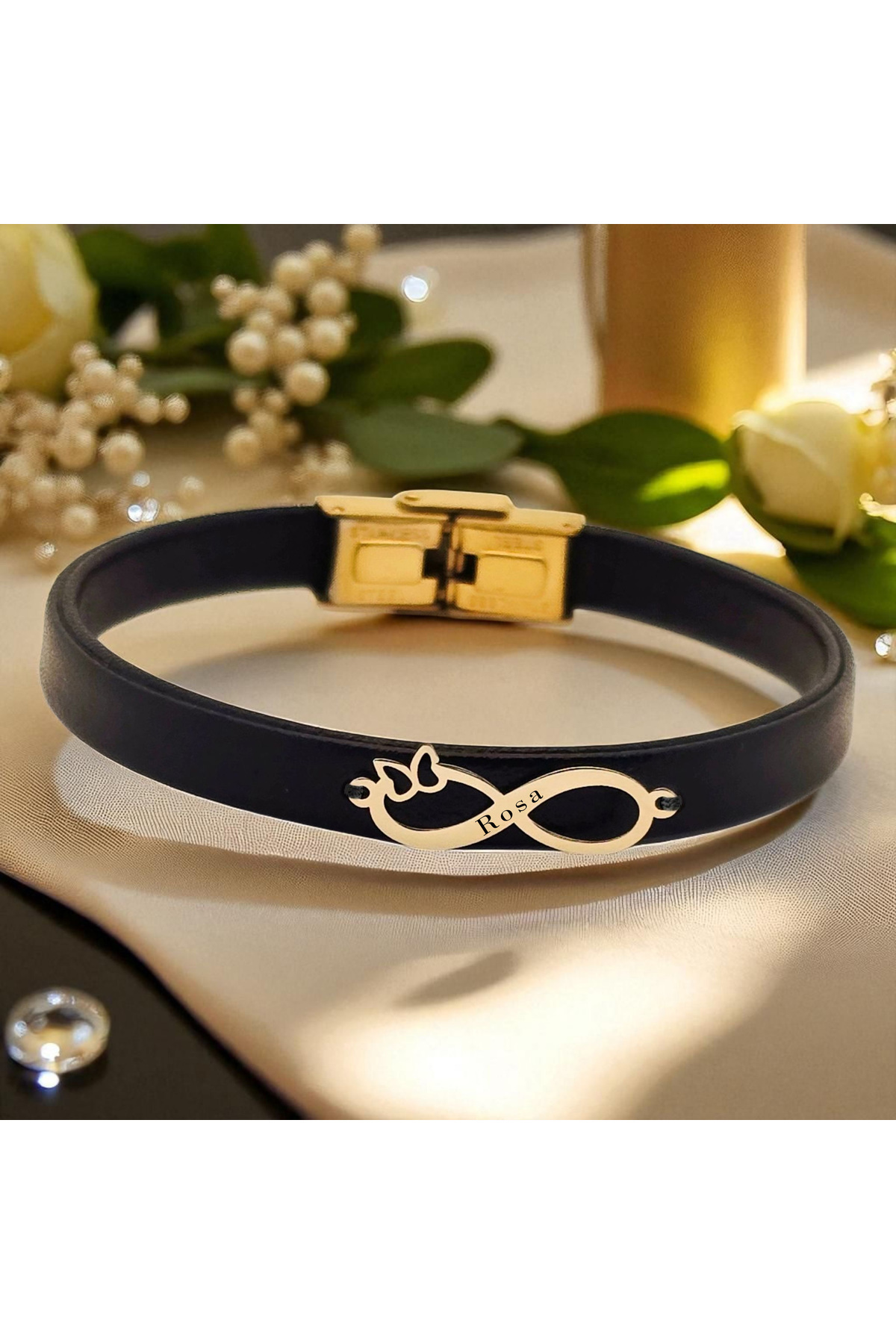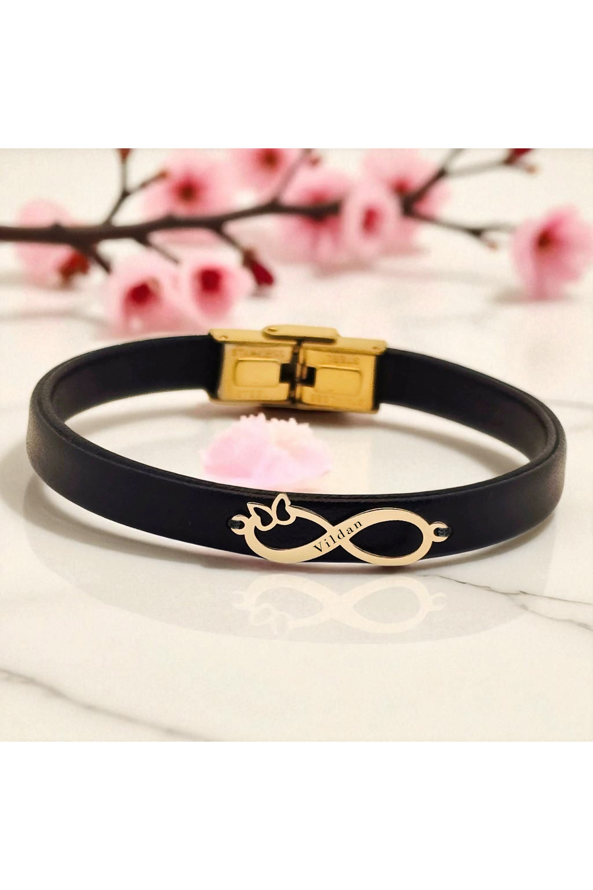 14 Ayar Altın Plakalı Feride İsmine Özel Sonsuzluk Motifli Siyah Derili Hediye Bileklik-562isim 14 Ayar Altın Plakalı Feride İsmine Özel Sonsuzluk Motifli Siyah Derili Hediye Bileklik-562isim 562-blkad-fbfg-MO1 22 cm
