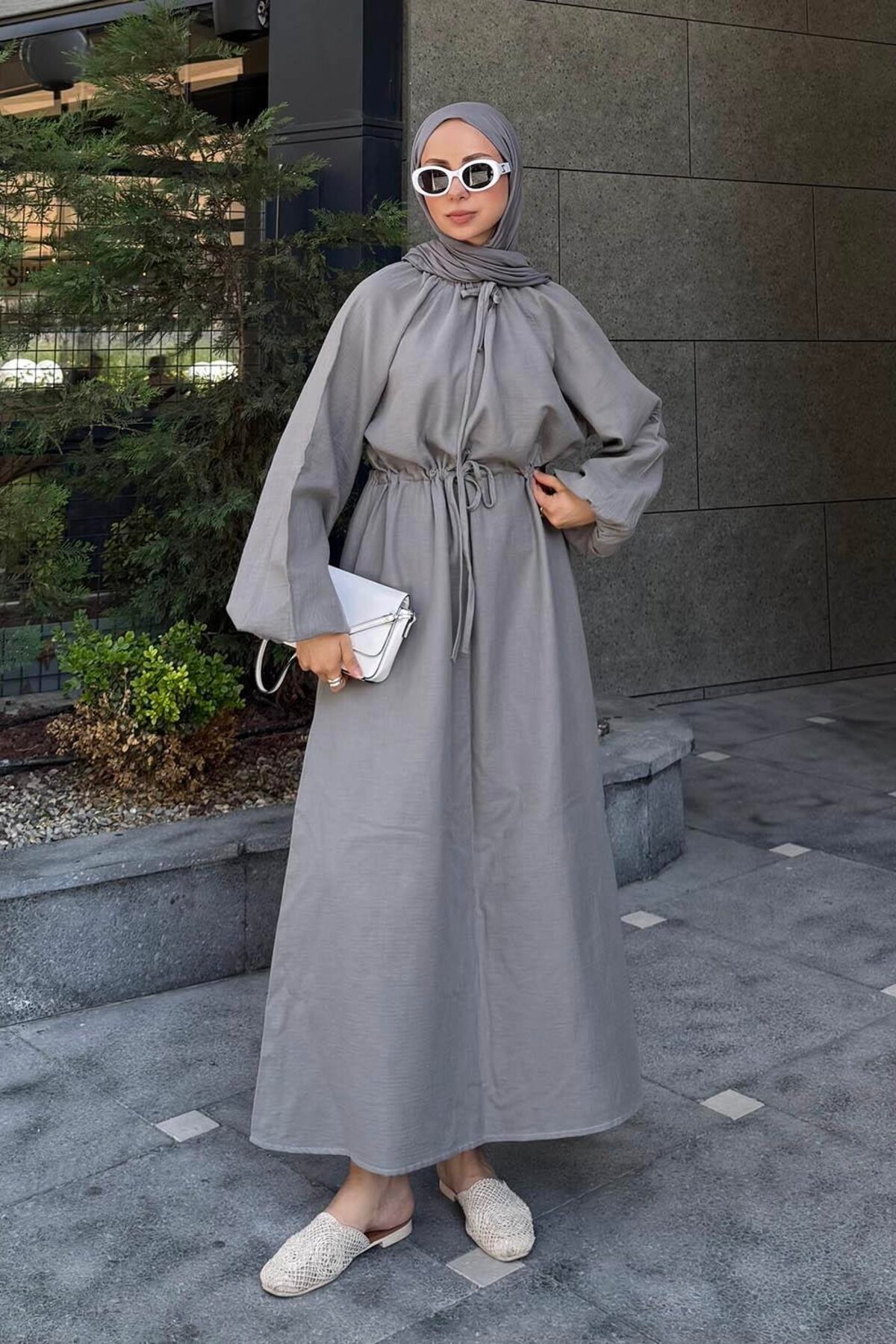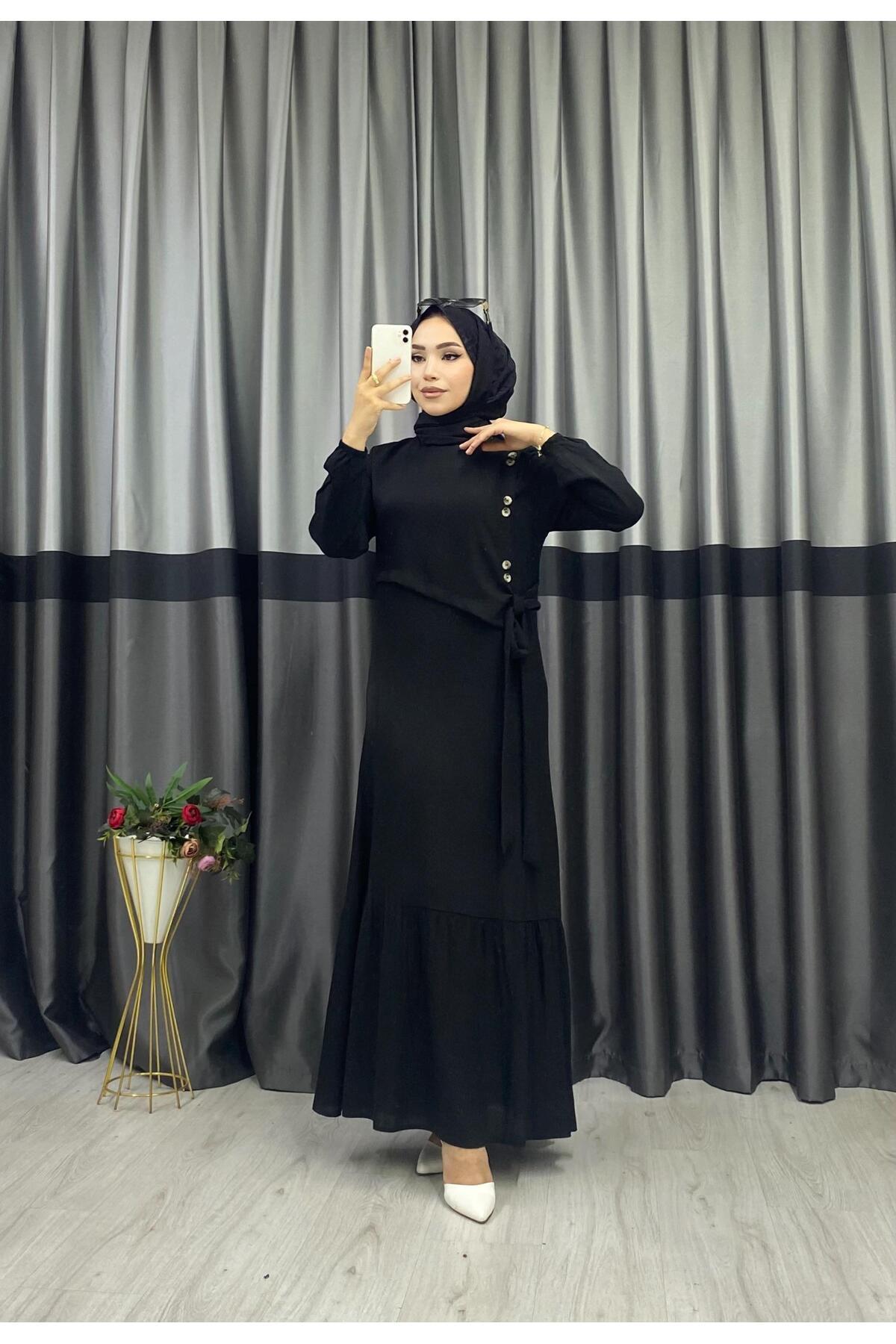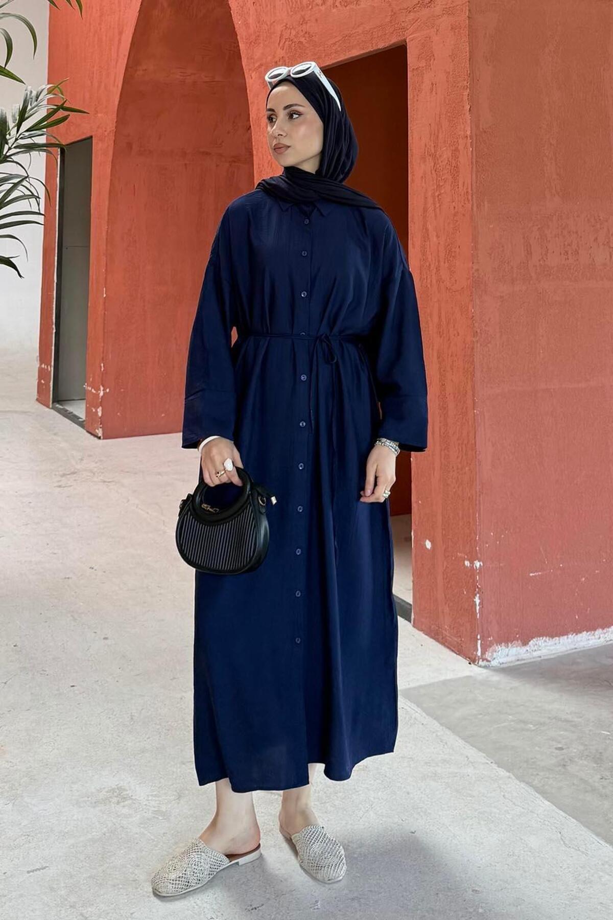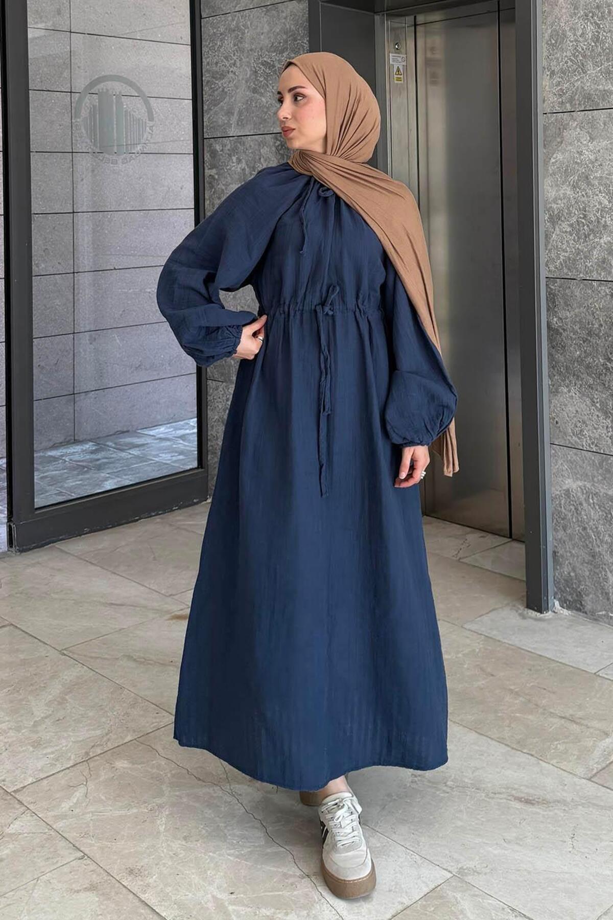 Balon Kol Bağlamalı Tesettür Elbise Lacivert Balon Kol Bağlamalı Tesettür Elbise Lacivert ZM2238 L