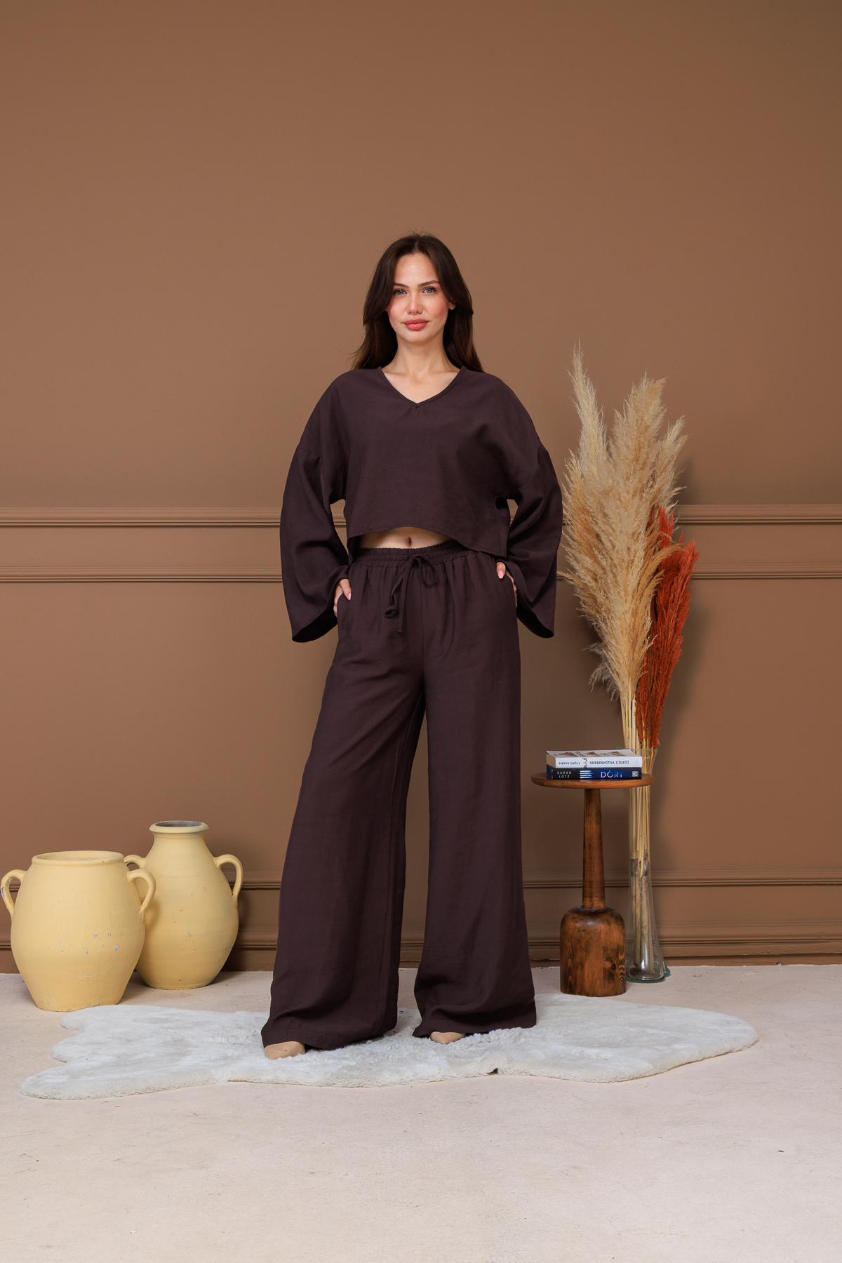 Gofre kadın gömlek pantolon ikili takım Gofre kadın gömlek pantolon ikili takım gofre 42