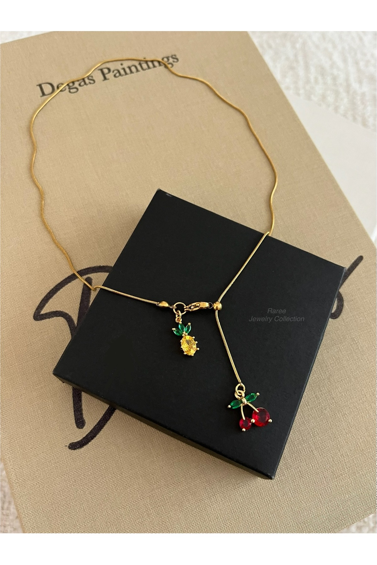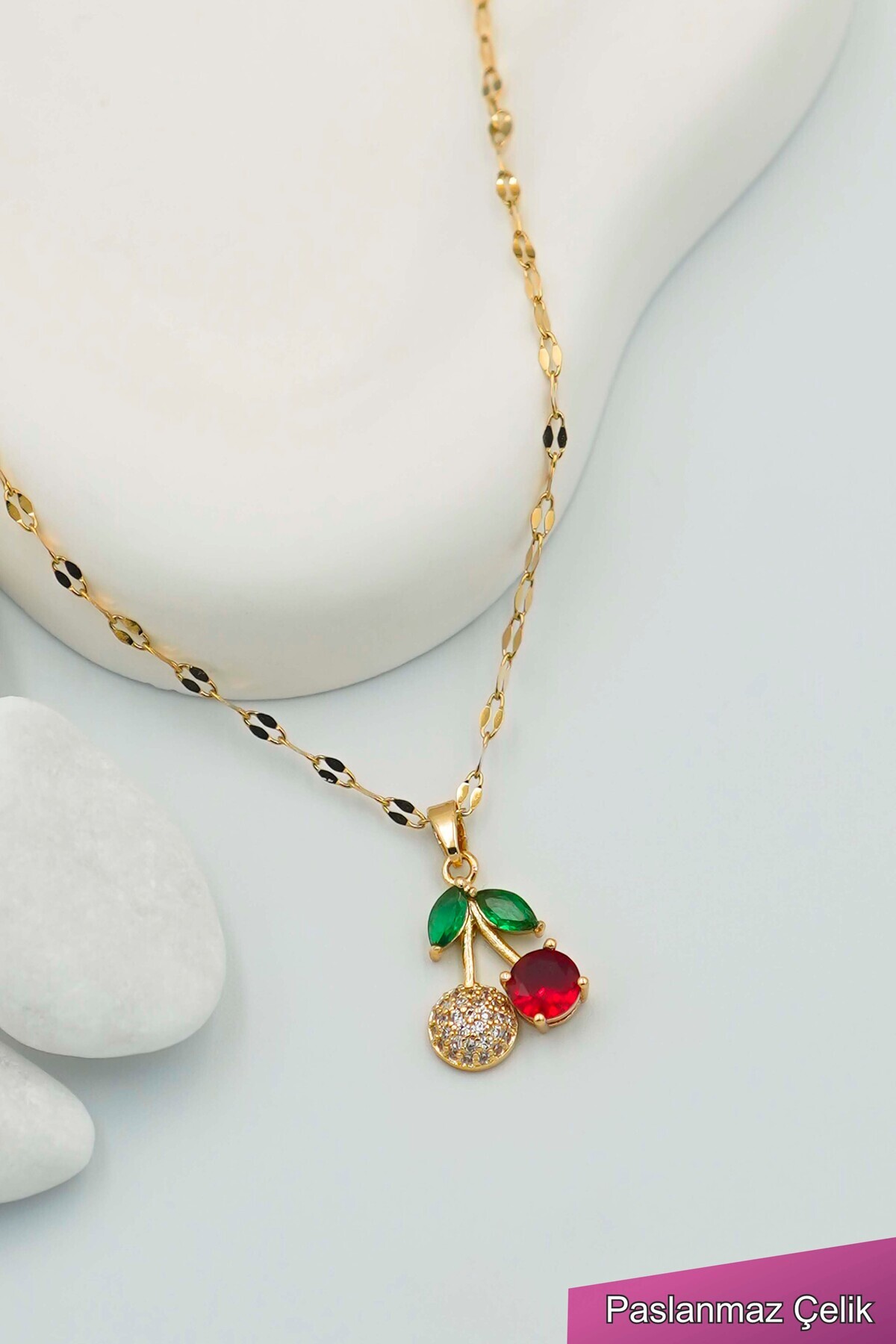 Zirkon taşlı çelik 2’li kiraz kolye Zirkon taşlı çelik 2’li kiraz kolye krzk Standart