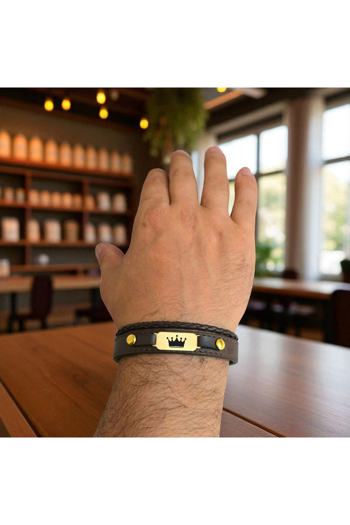 14 Ayar Plakalı Altın Krallık Tacı Temalı Doğal Siyah Derili Oval Figürlü Hediye Bileklik-564sembol 14 Ayar Plakalı Altın Krallık Tacı Temalı Doğal Siyah Derili Oval Figürlü Hediye Bileklik-564sembol 564-dsder-fbmg-MO3 25 cm