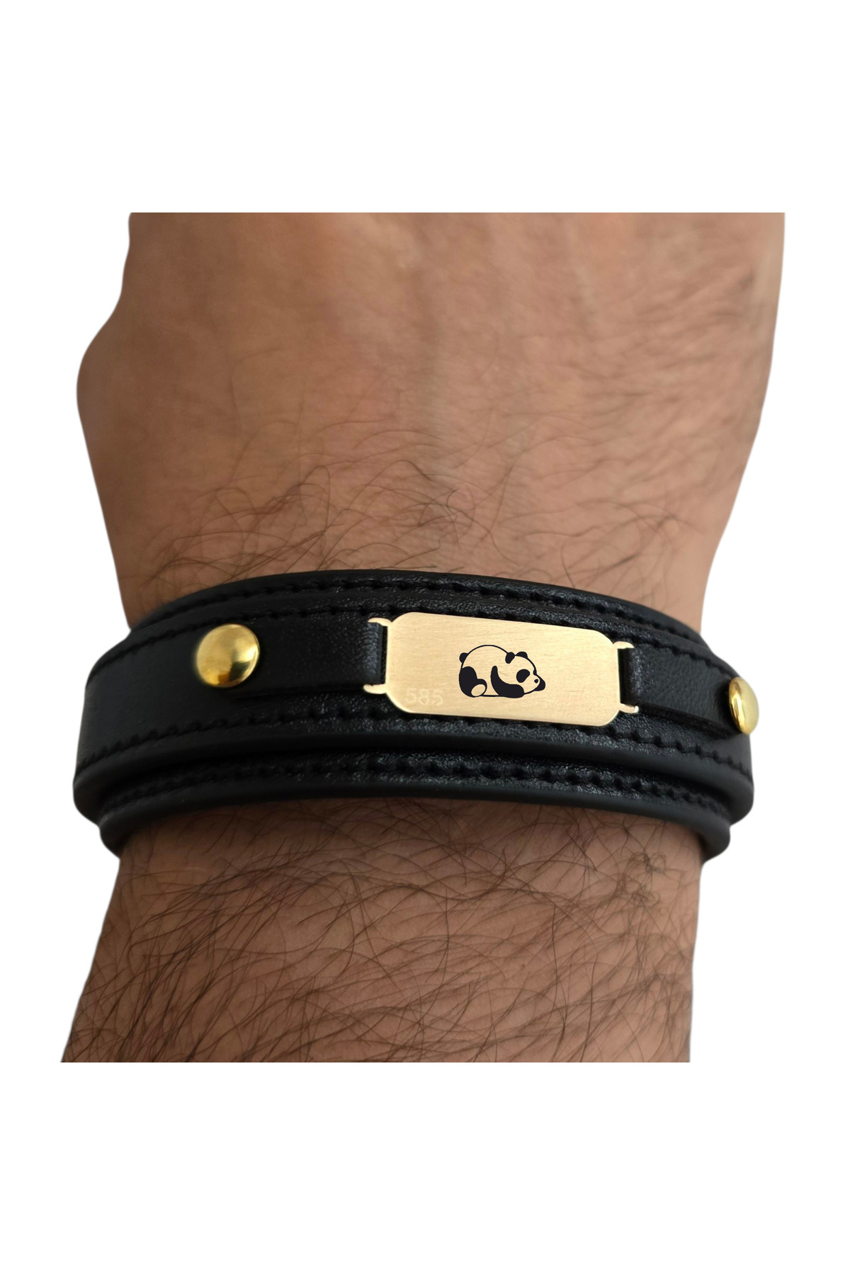14 Ayar Altın Plakalı Panda Temalı Doğal Siyah Derili Oval Figürlü Hediye Bileklik-564sembol 14 Ayar Altın Plakalı Panda Temalı Doğal Siyah Derili Oval Figürlü Hediye Bileklik-564sembol 564-dsder-fbmg-MO3 25 cm