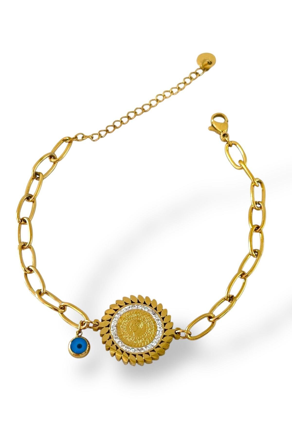 Altın Renk Çeyrek Figürlü Çelik Bileklik Altın Renk Çeyrek Figürlü Çelik Bileklik 8699400038809 تک سایز