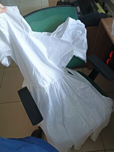 Beyaz Büyük Fiyonklu Kare Yaka Poplin Kloş Elbise Beyaz Büyük Fiyonklu Kare Yaka Poplin Kloş Elbise KCGM13428 3XL