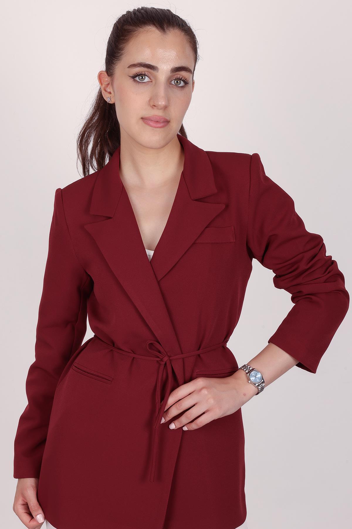Kadın Bordo Bel Bağlamalı Blazer Ceket Kadın Bordo Bel Bağlamalı Blazer Ceket HZL2210 50