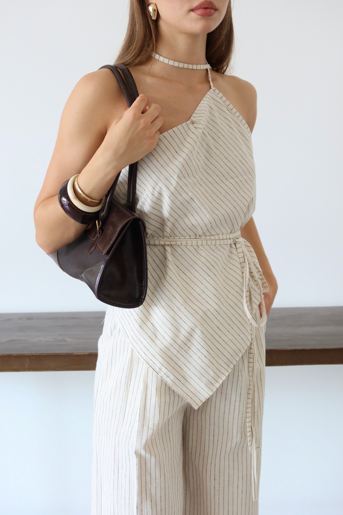 Kadın Asimetrik Kesim Bağlama Detaylı Keten Takım Kadın Asimetrik Kesim Bağlama Detaylı Keten Takım 00120 L