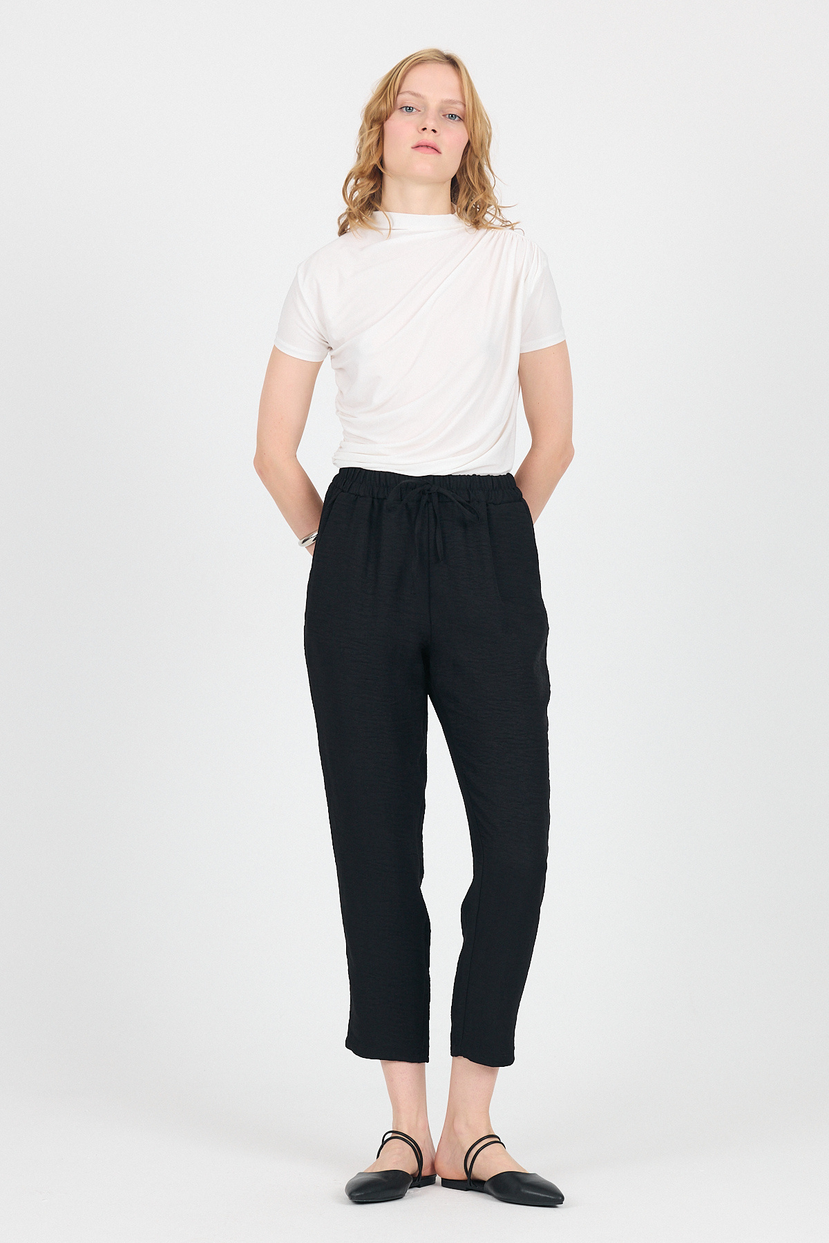 Siyah Pamuklu Bel Lastikli Düz Paça Düz Paça Pantolon 4800 Siyah Pamuklu Bel Lastikli Düz Paça Düz Paça Pantolon 4800 25Y1123133077 42