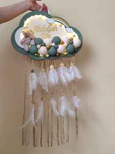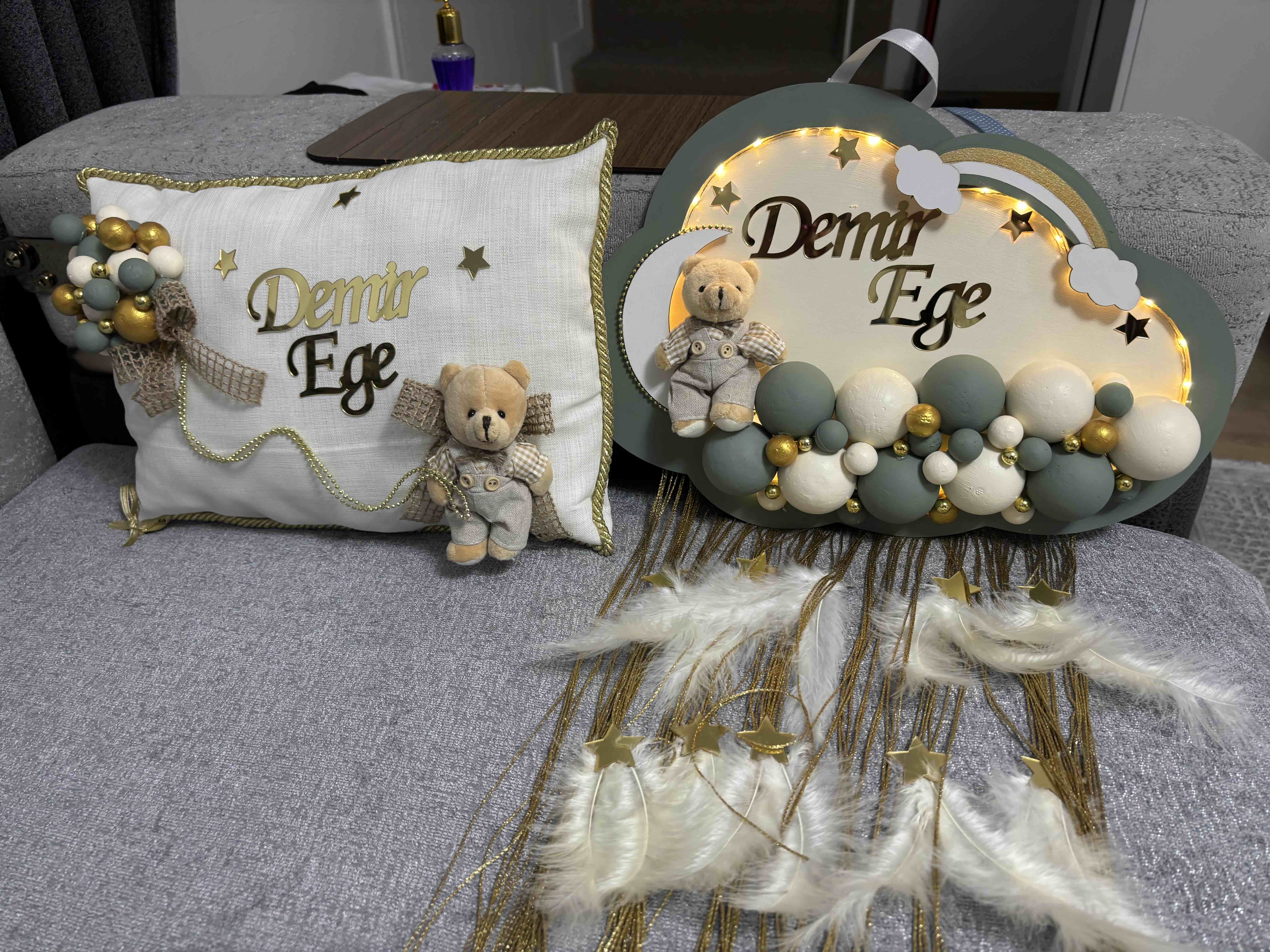 Bubble Ledli Bulut Bebek Kapı Süsü Ve Yastık Yeşil Kenar Krem Zemin Bubble Ledli Bulut Bebek Kapı Süsü Ve Yastık Yeşil Kenar Krem Zemin kyyeşilkrem1 تک سایز
