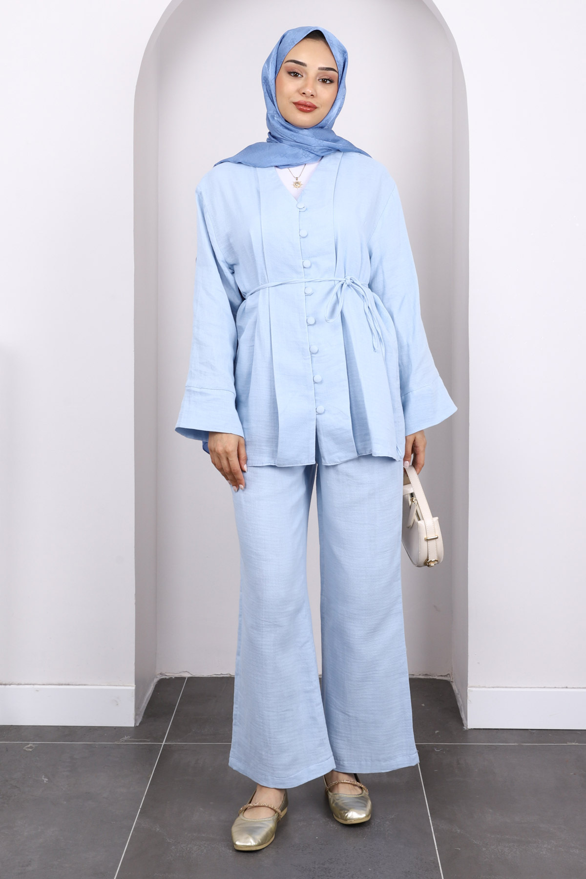 Bebe Mavi Gömlek Pantolonlu Müslin Takım Bebe Mavi Gömlek Pantolonlu Müslin Takım IMJ007332 46