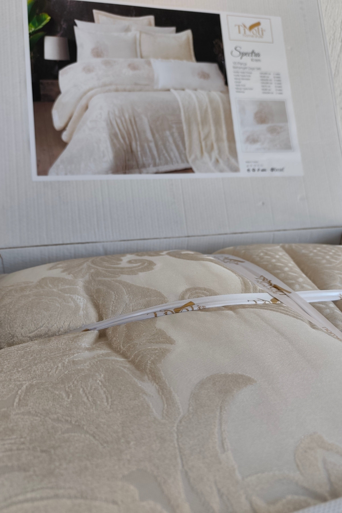 Tivoli 10 parça Battaniyeli Kadife Yatak Örtülü Çeyiz Seti Spectra Krem Tivoli 10 parça Battaniyeli Kadife Yatak Örtülü Çeyiz Seti Spectra Krem 55-2227 تک سایز