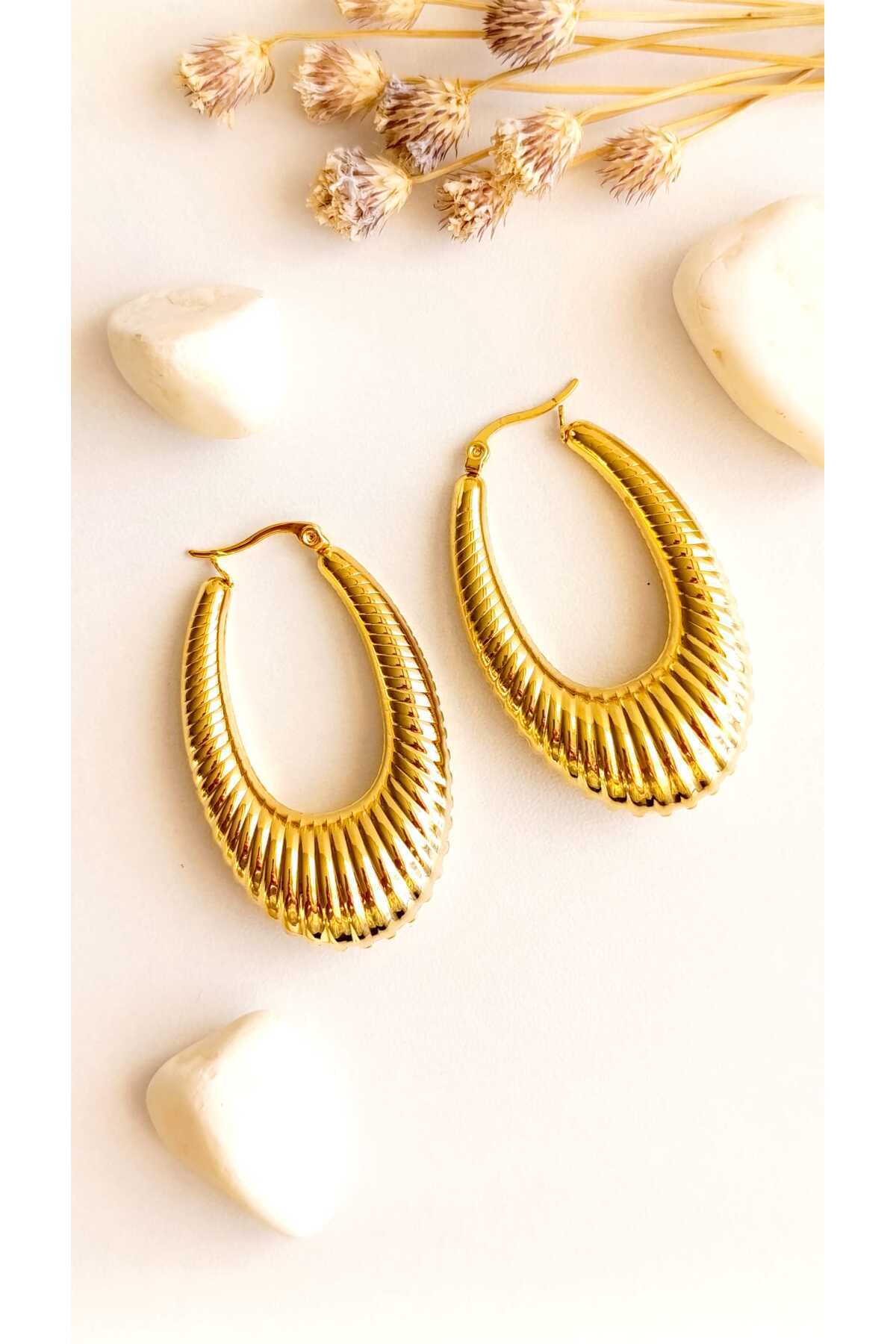 Küpe Oval Sallantılı Altın Kaplama 316 L Çelik + Hediye Paket Küpe Oval Sallantılı Altın Kaplama 316 L Çelik + Hediye Paket 00722 تک سایز
