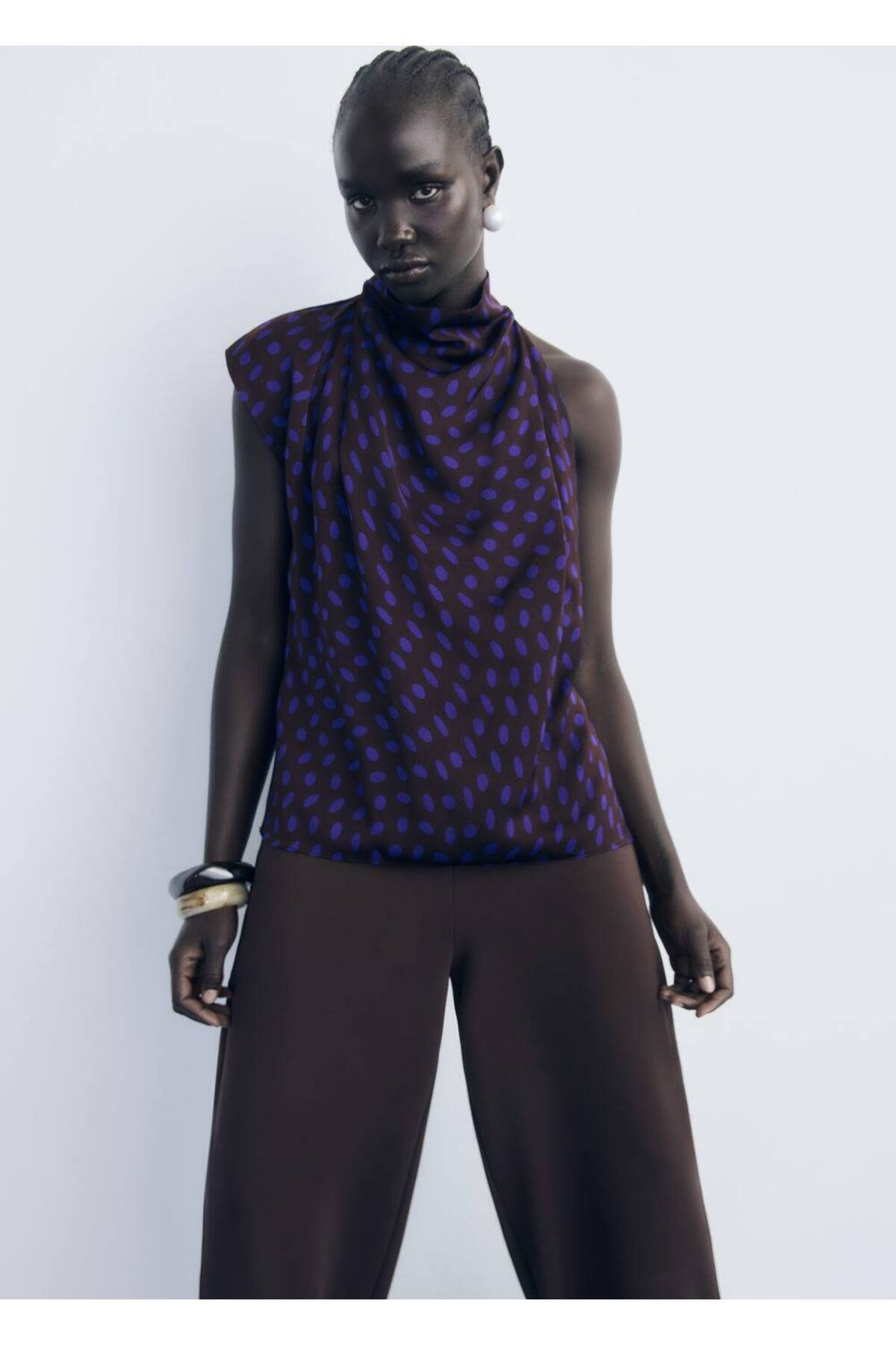 Puantiye desenli drape yaka bluz Puantiye desenli drape yaka bluz 17024446 XL