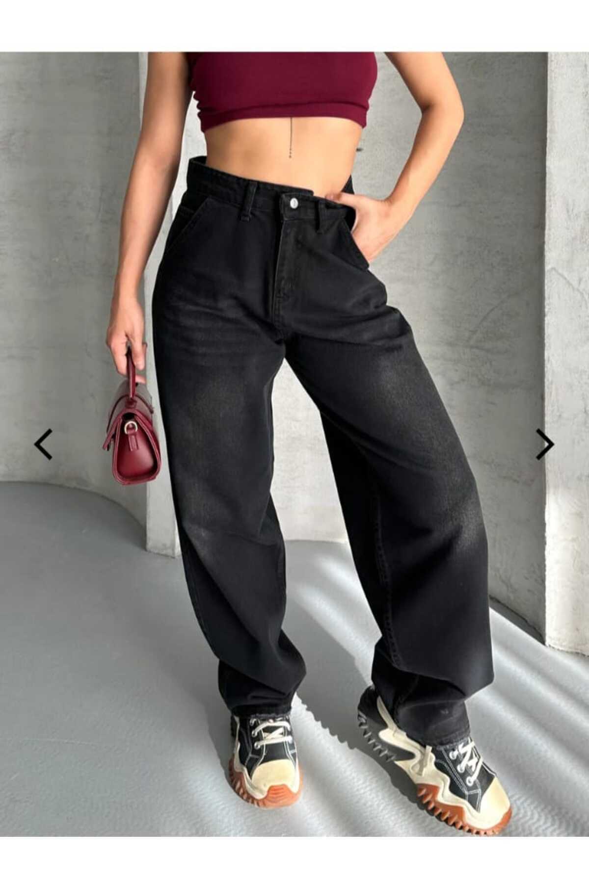 Toka Detaylı Siyah Bol Kesim Geniş Paça Rahat Baggy Jean Pantolon Toka Detaylı Siyah Bol Kesim Geniş Paça Rahat Baggy Jean Pantolon TYC9E3A3C7A453E7A9A805A00 42