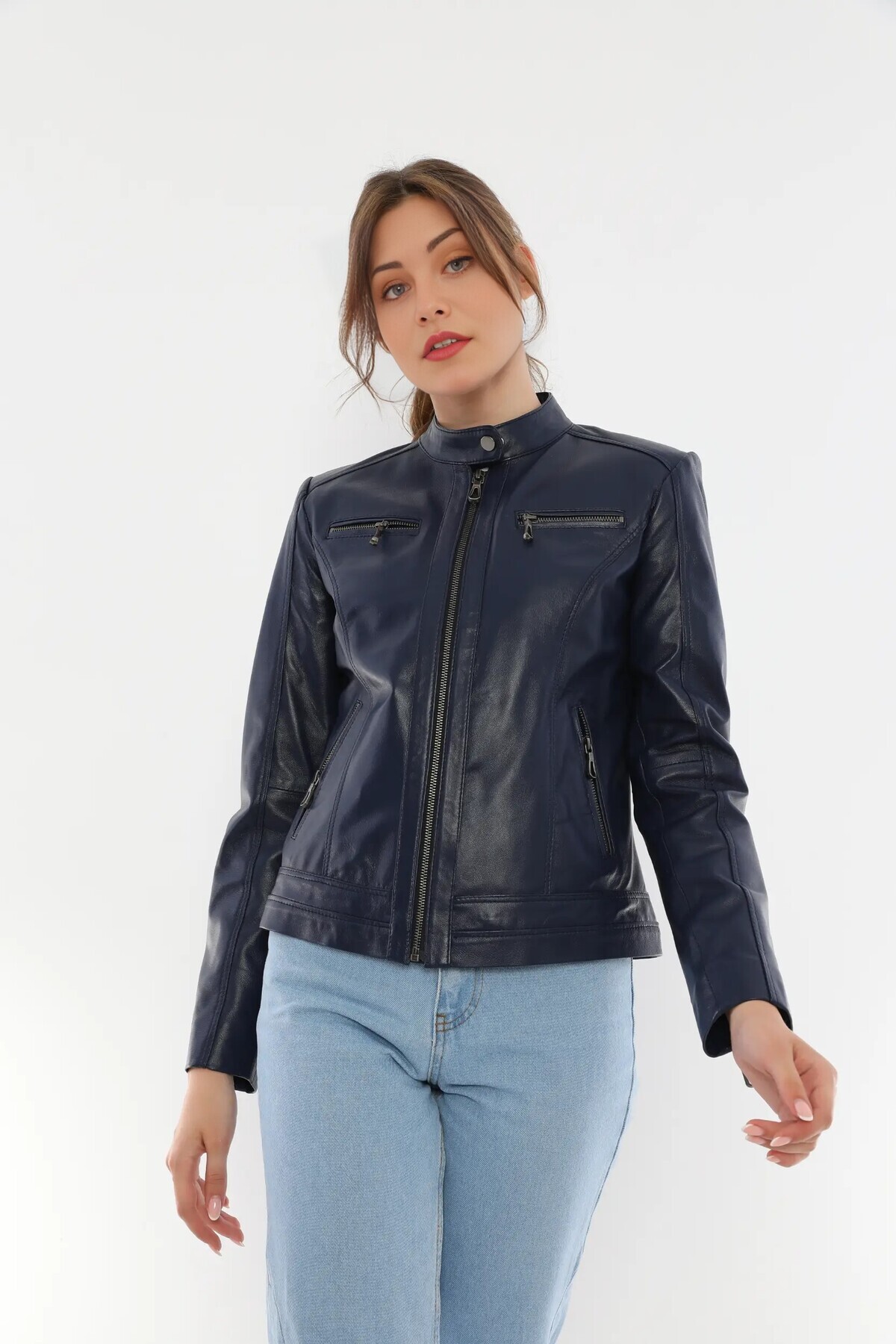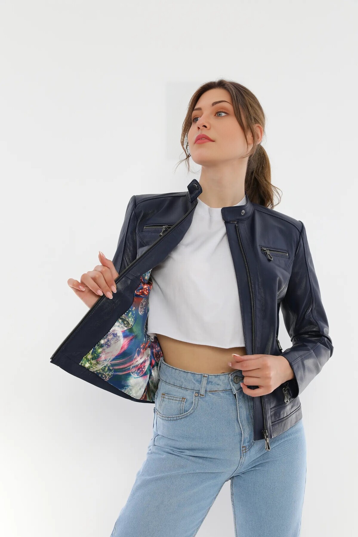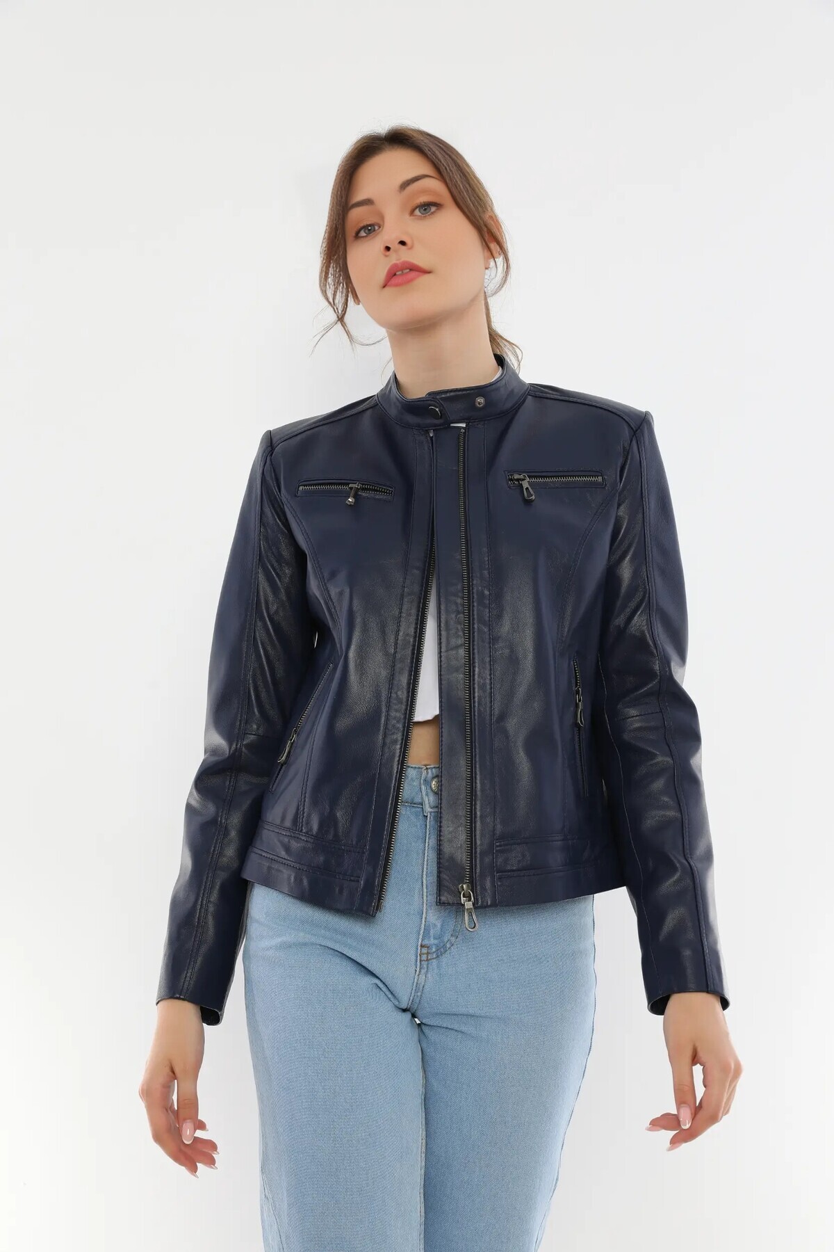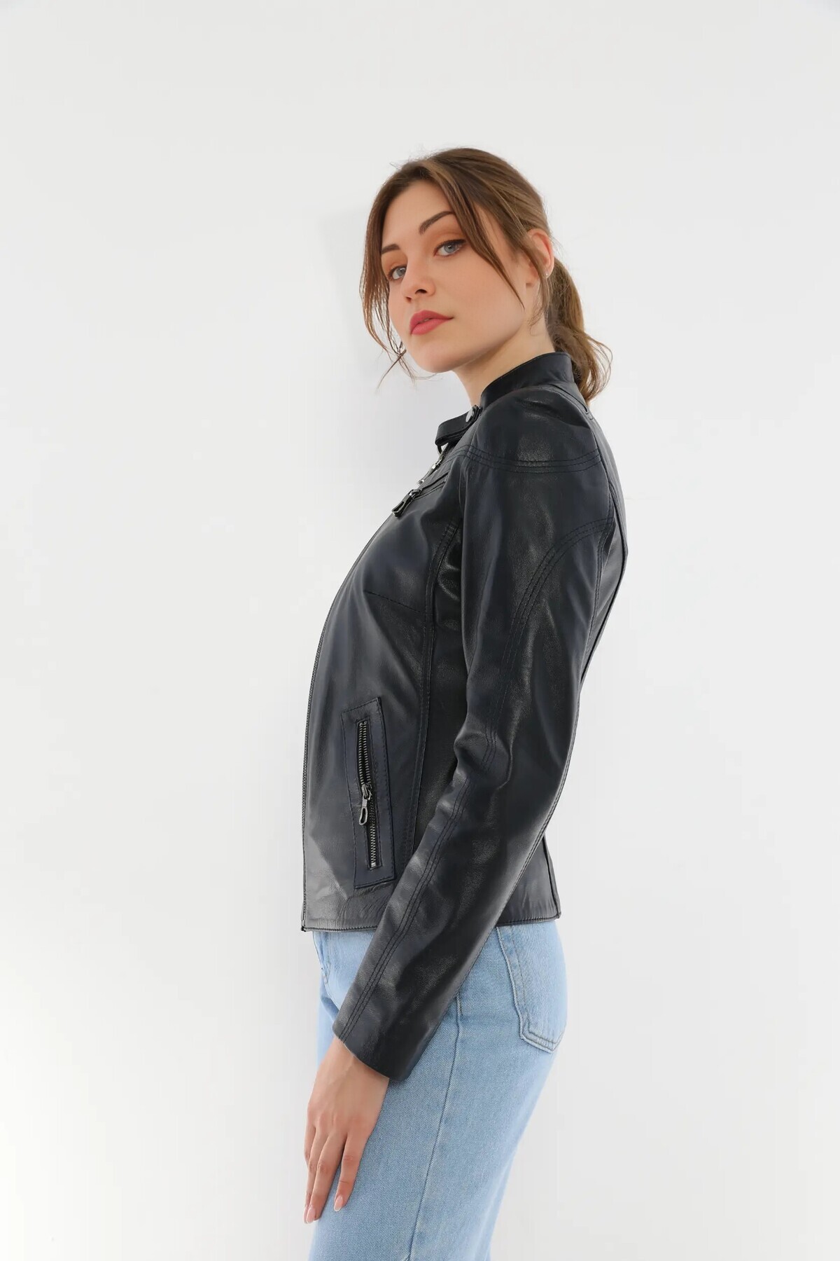 FERMUAR DETAYLI KADIN DERİ CEKET FERMUAR DETAYLI KADIN DERİ CEKET L0141 2XL