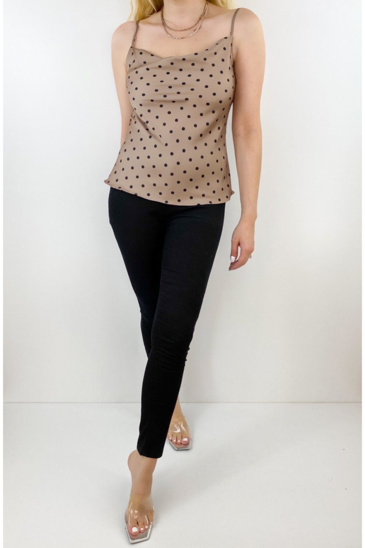 Kadın Askılı Yakası Büzgülü Puantiyeli Atlas Bluz Kadın Askılı Yakası Büzgülü Puantiyeli Atlas Bluz ABE-6880ab70131ef 2XL-3XL