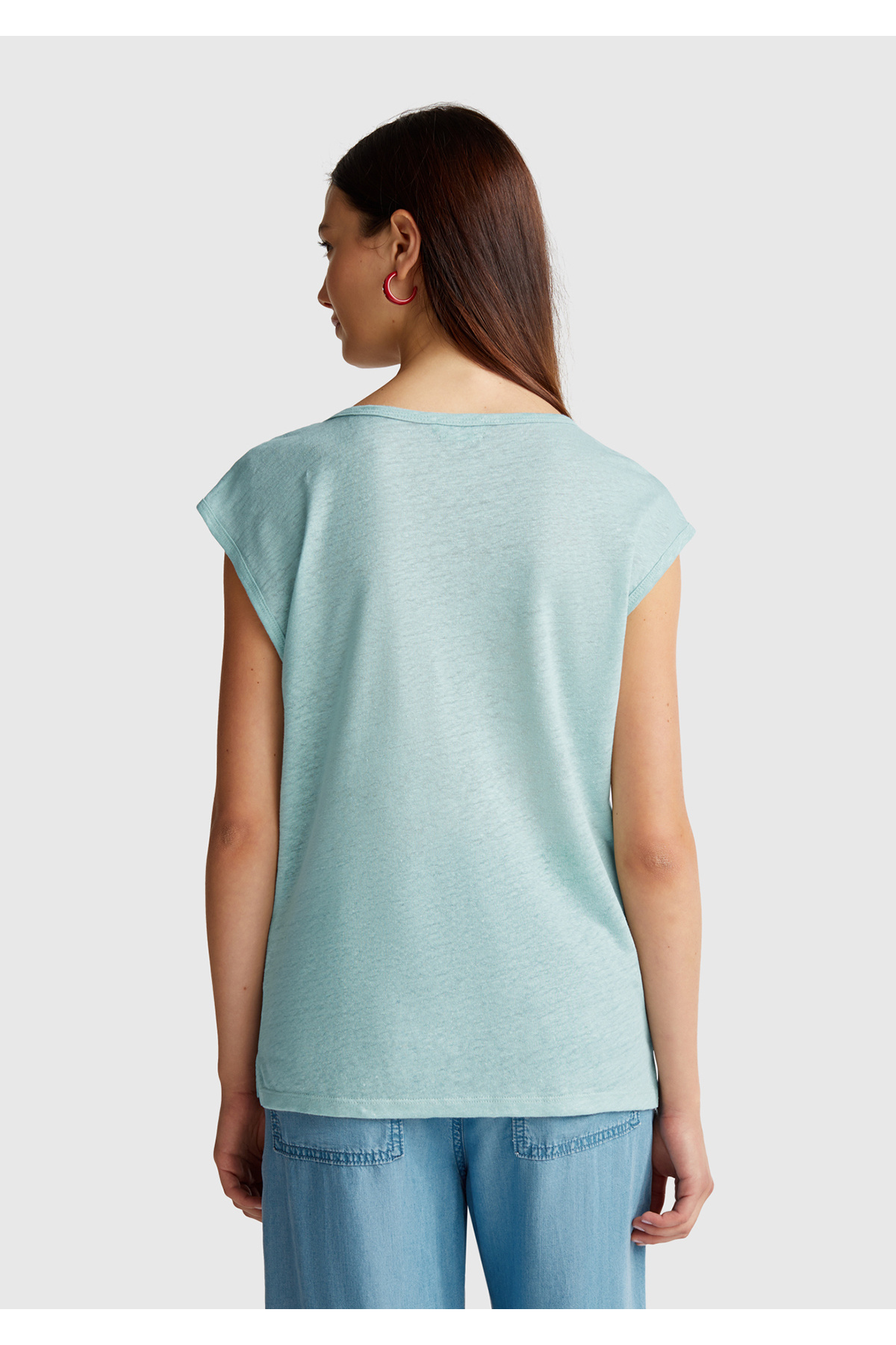 Kadın Su Yeşili %100 Keten Yanları Yırtmaçlı Relax Fit Yuvarlak Yaka T-Shirt Kadın Su Yeşili %100 Keten Yanları Yırtmaçlı Relax Fit Yuvarlak Yaka T-Shirt 125P37UJE16B1 XXS