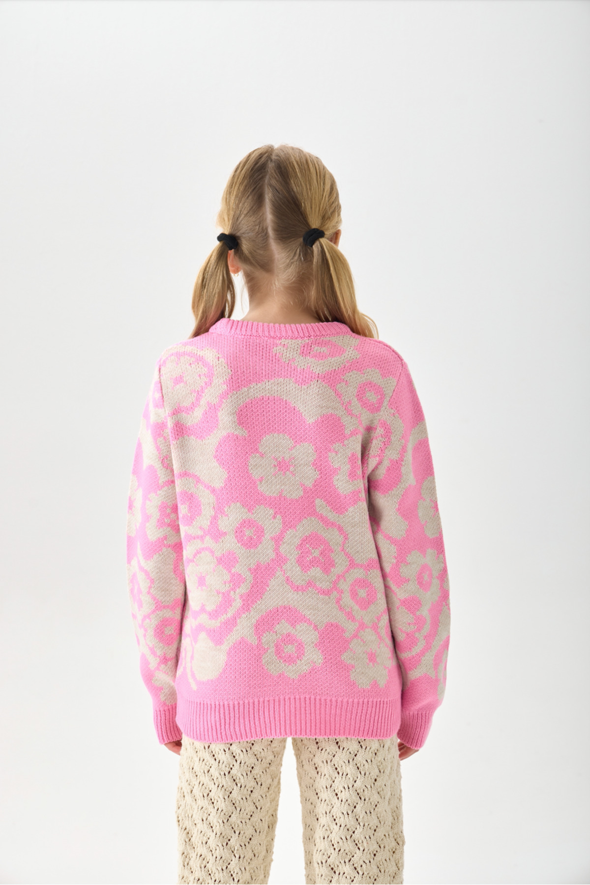 Çiçek Desenli Kız Çocuk Kazak Triko Çiçek Desenli Kız Çocuk Kazak Triko NSR250012 9-10 Yaş