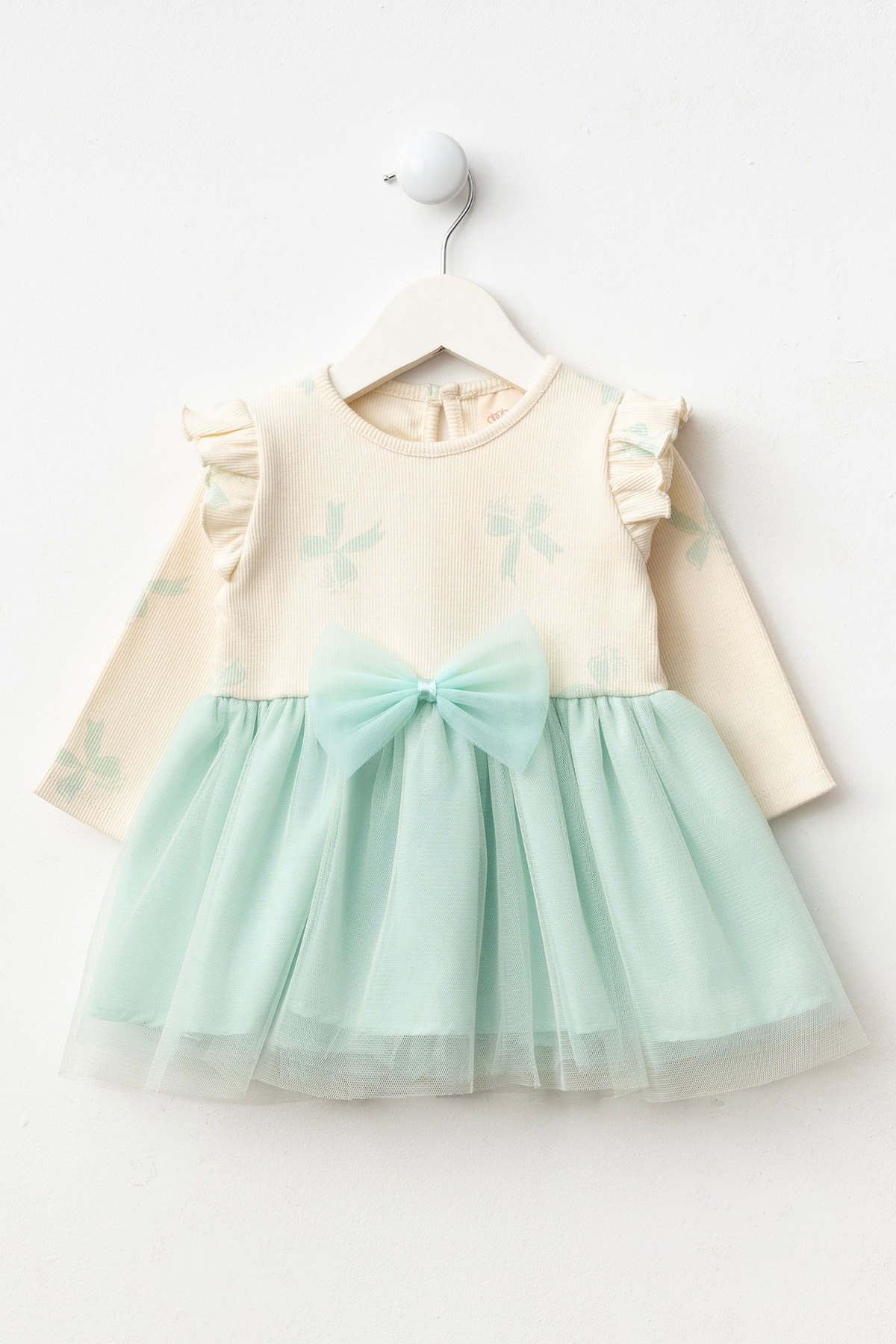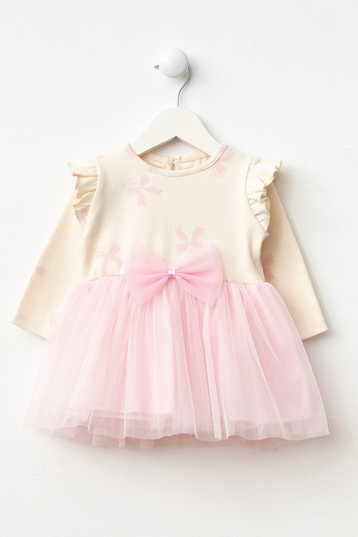 Fiyonk Detaylı Omzu Fırfırlı Tüllü Kız Bebek Elbise Fiyonk Detaylı Omzu Fırfırlı Tüllü Kız Bebek Elbise 25502 3 Yaş