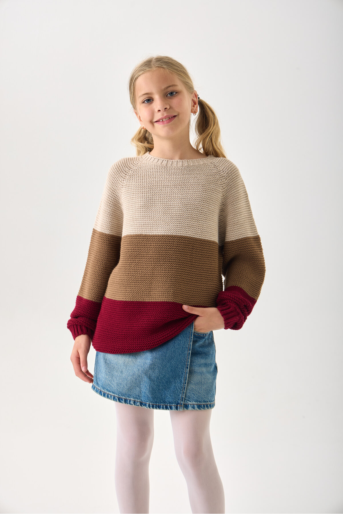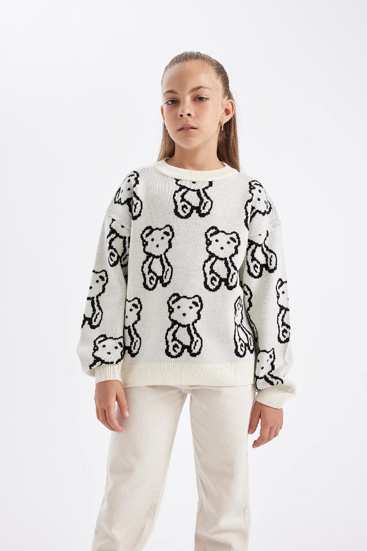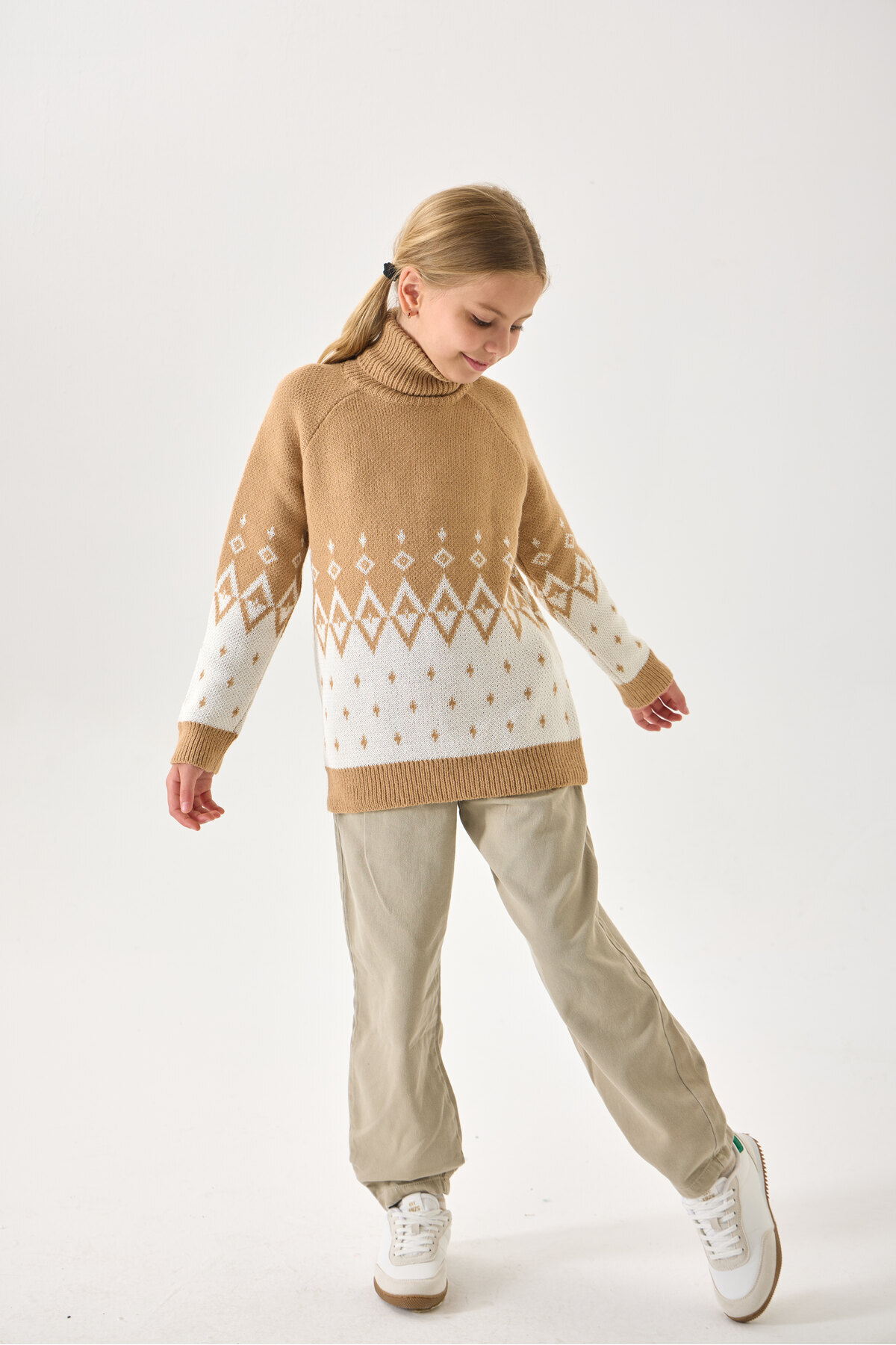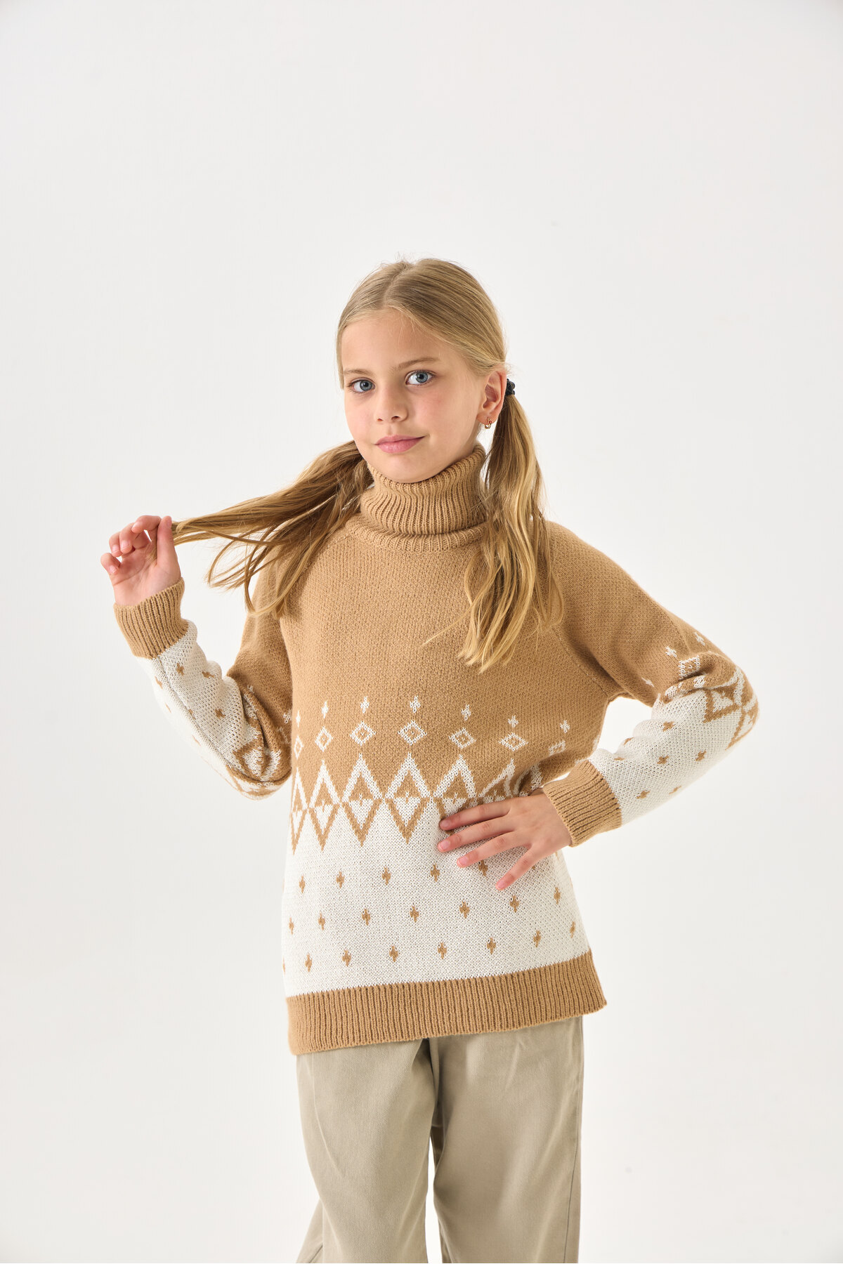 Kız Çocuk Boğazlı Triko Kazak - Uzun Kollu ve Rahat Kesim Kız Çocuk Boğazlı Triko Kazak - Uzun Kollu ve Rahat Kesim NSR250025 13-14 Yaş