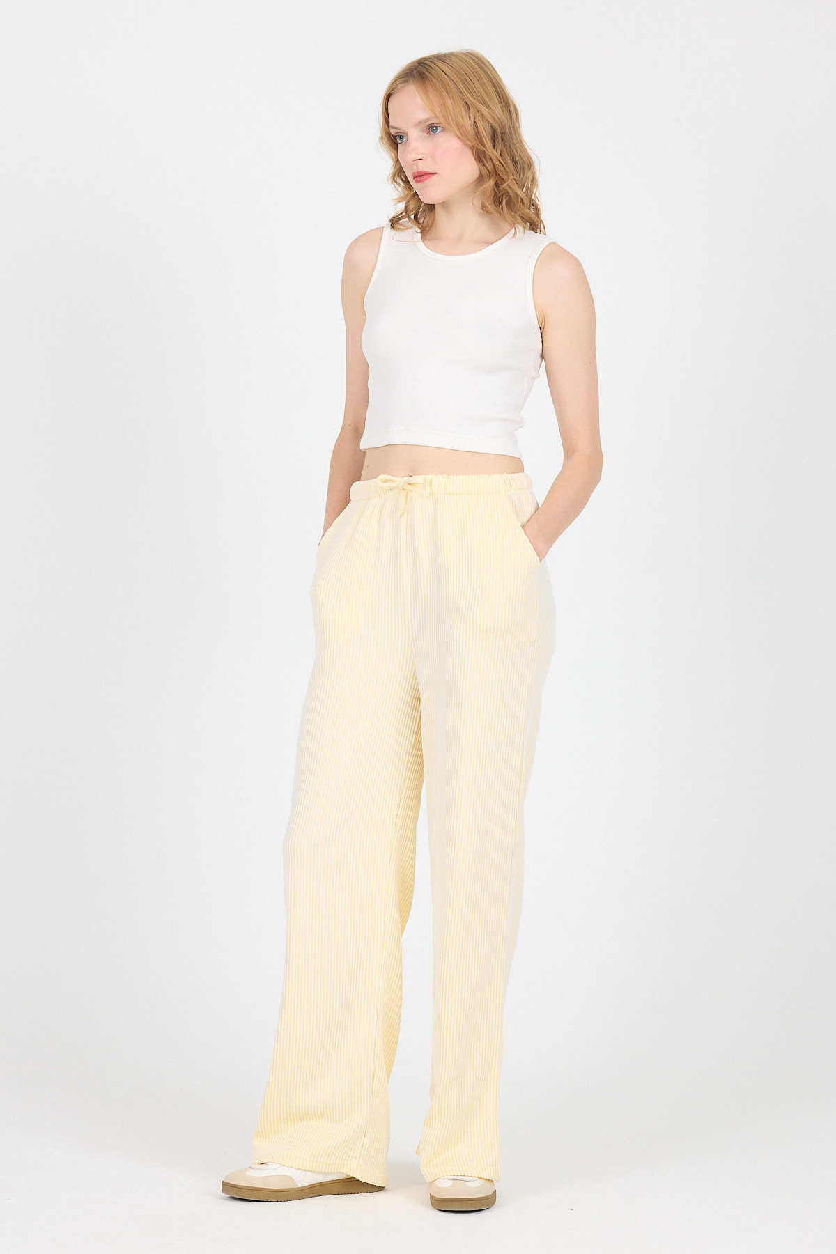 Sarı Beli Lastikli Çizgili Geniş Paça Dokuma Pantolon 4098 Sarı Beli Lastikli Çizgili Geniş Paça Dokuma Pantolon 4098 25Y1022133004 XL