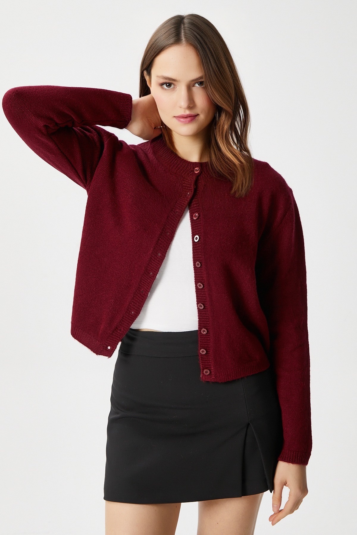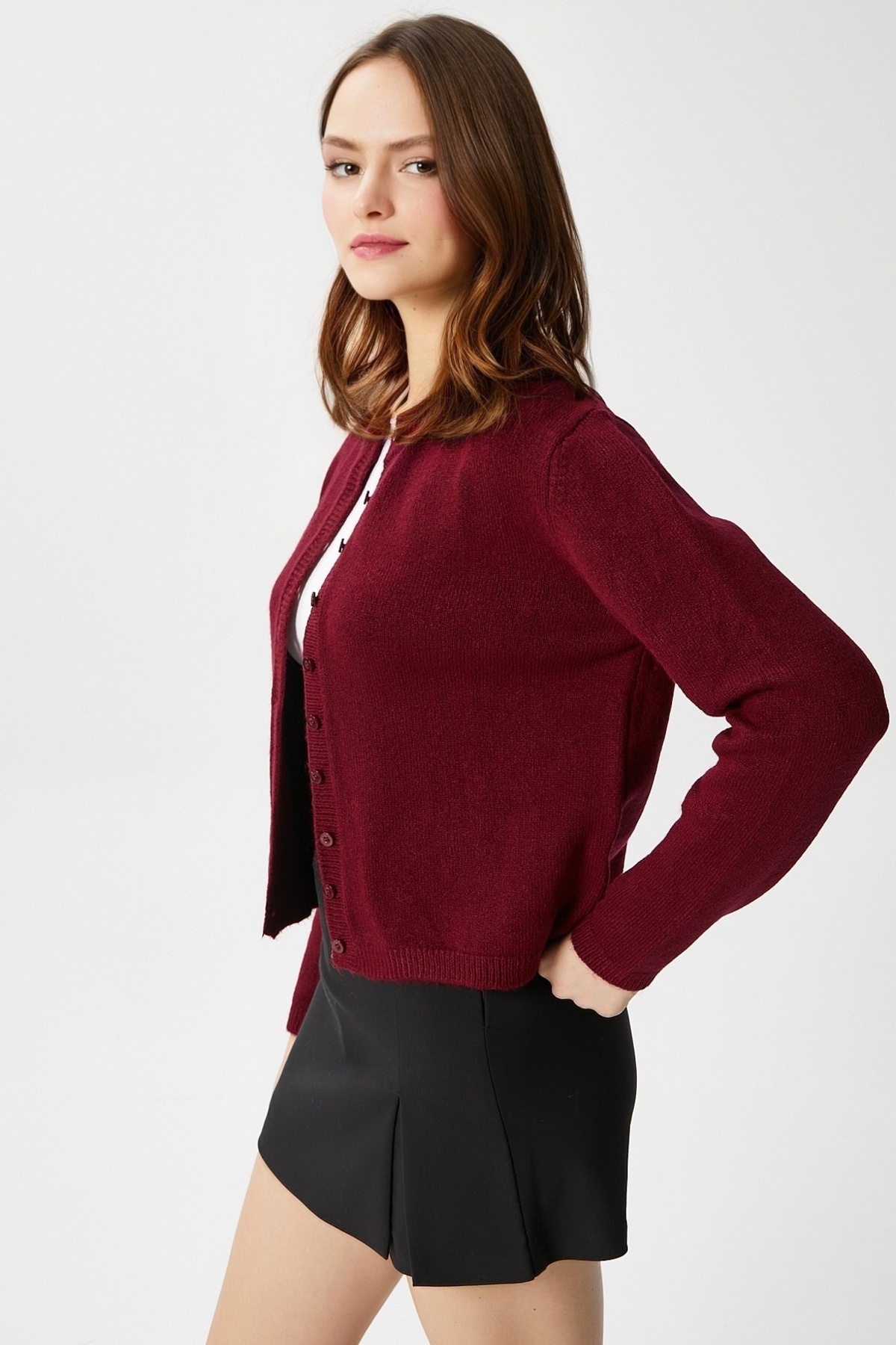Kadın Nina Bisiklet Yaka Bordo Basic Hırka Kadın Nina Bisiklet Yaka Bordo Basic Hırka 1432 Standart