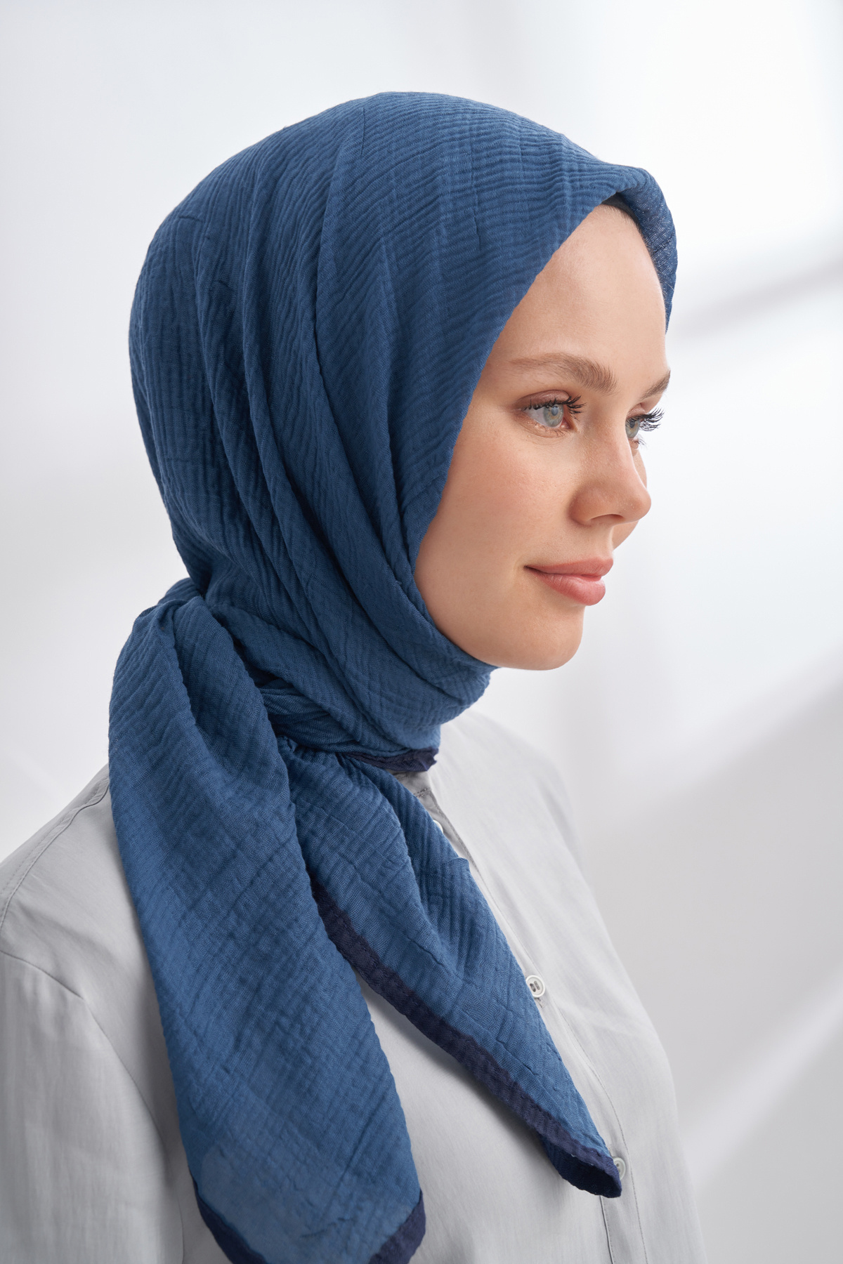 MÜSLİN BİYELİ EŞARP - İNDİGO MÜSLİN BİYELİ EŞARP - İNDİGO 3353 110 x 110